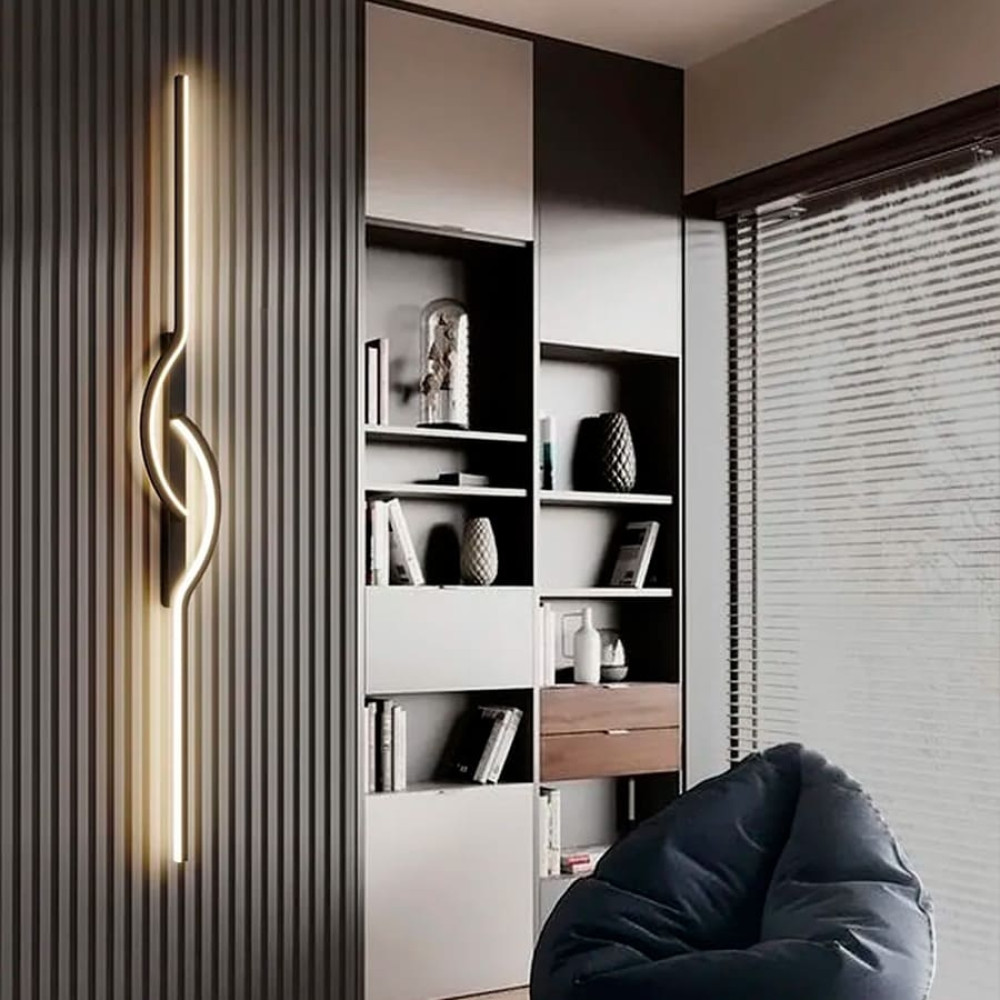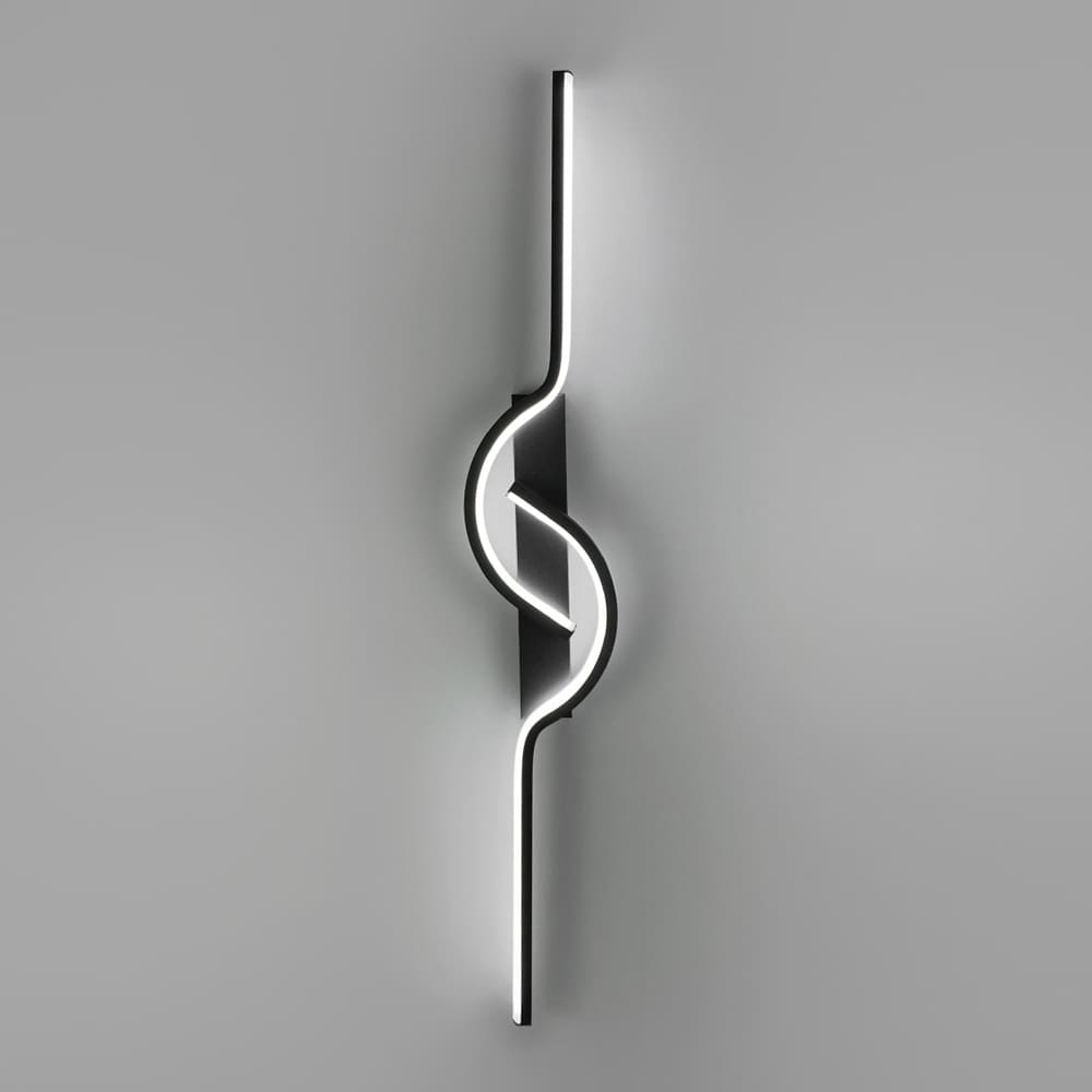 Сучасний настінний світильник із вбудованими світлодіодами — стильне рішення для інтер’єрів, де важлива геометрія та акцентне світло. Чорний корпус із вигнутим LED-контуром формує динамічну фігуру, що нагадує нотний символ або плавний елемент архітектури. Світильник світиться нейтральним денним світлом, яке рівномірно розподіляється по лінії. Доступні розміри довжини: 60 см, 80 см, 100 см. Ширина — 12 см Тип кріплення — вертикальне або горизонтальне. Завдяки можливості монтажу в різних положеннях, модель легко адаптується до дизайну стін, зонального освітлення або створення світлових композицій. Ідеально підходить для сучасних інтер’єрів у стилі мінімалізм, модерн або хай-тек.