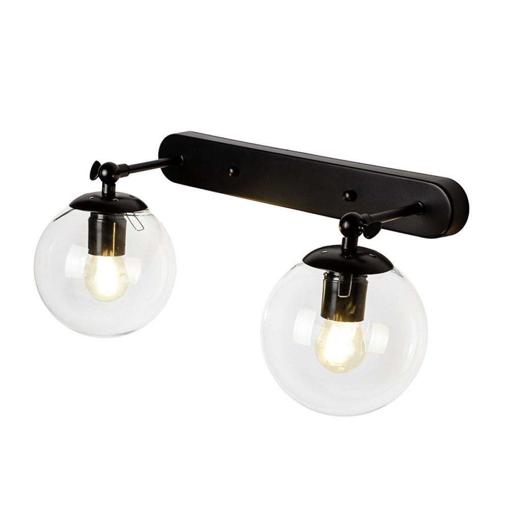 Світильник настінний Бра кулі Levistella 756WPR150F-2 BK+CL чорний, плафони прозорі