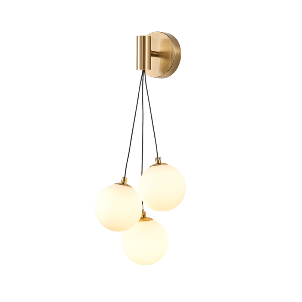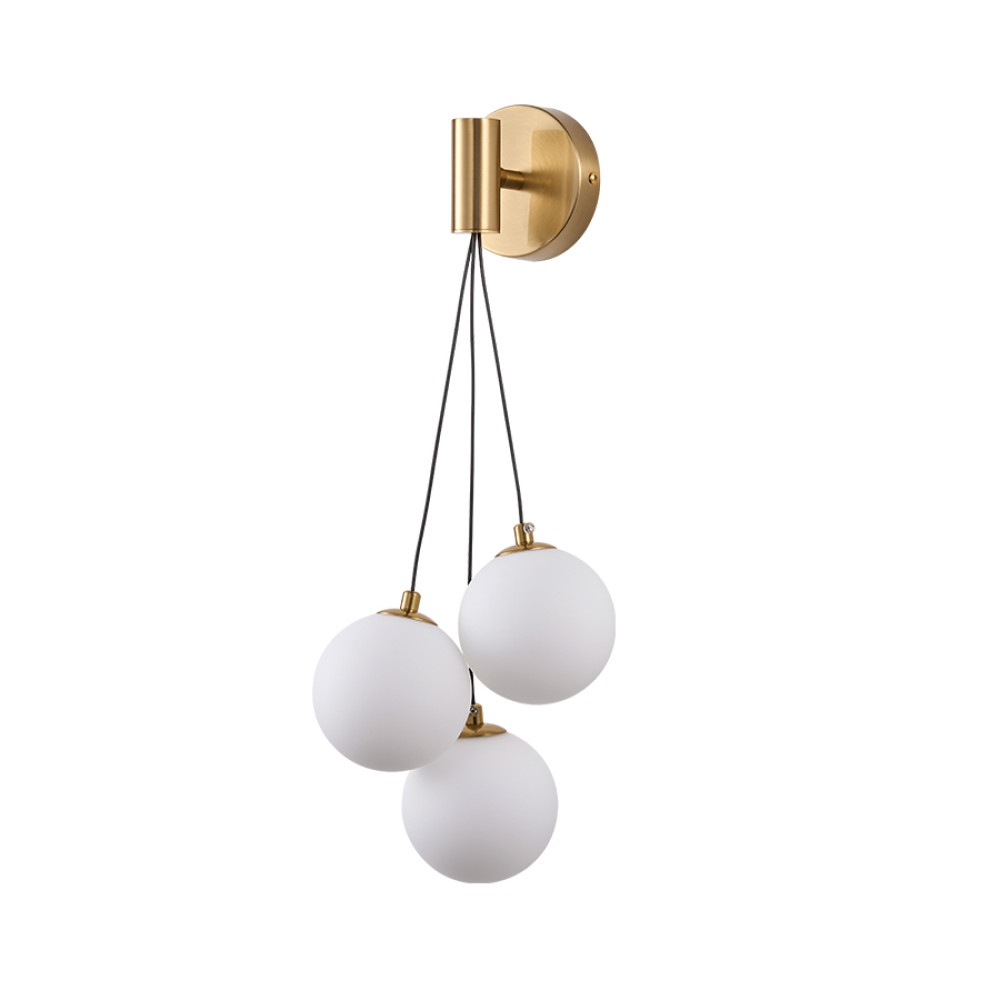 Стильний настінний світильник бра, на три лампи зі скляними підвісними плафонами-кулями. Нестандартний і мінімалістичний дизайн роблять цю модель універсальним варіантом для кімнат, коридорів або робочих зон. Це той світильник, який дасть Вам освітлення там, де це потрібно і стільки, скільки потрібно.