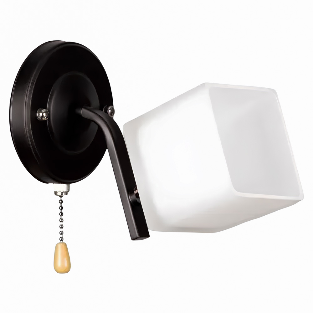 Сучасний настінний світильник Бра на одну лампу, оснащений скляним плафоном прямокутної форми та мотузковим вимикачем на корпусі.