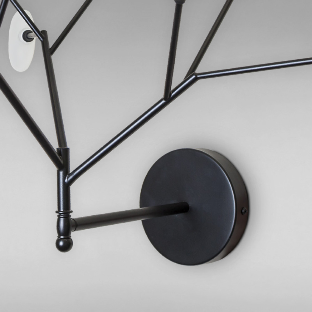 Настінний світильник бра на дев'ять ламп з плафонами у вигляді краплі і корпусом у формі гілки дерева.