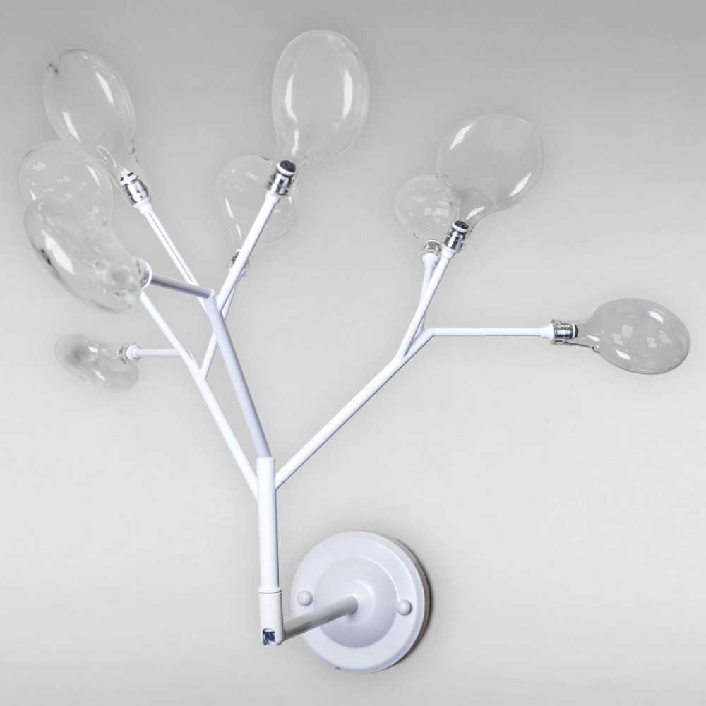 Настінний світильник бра на дев'ять ламп з плафонами у вигляді краплі та корпусом у формі гілки дерева.