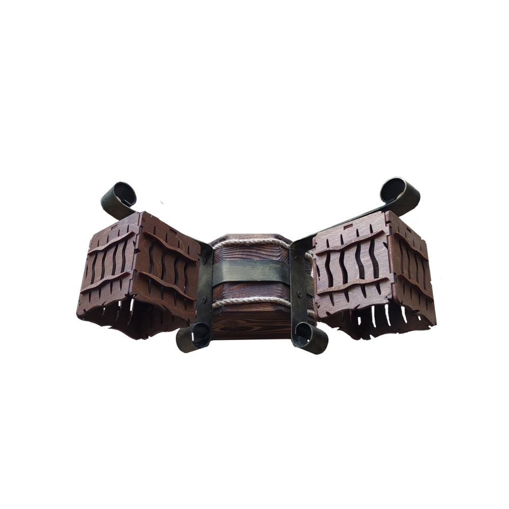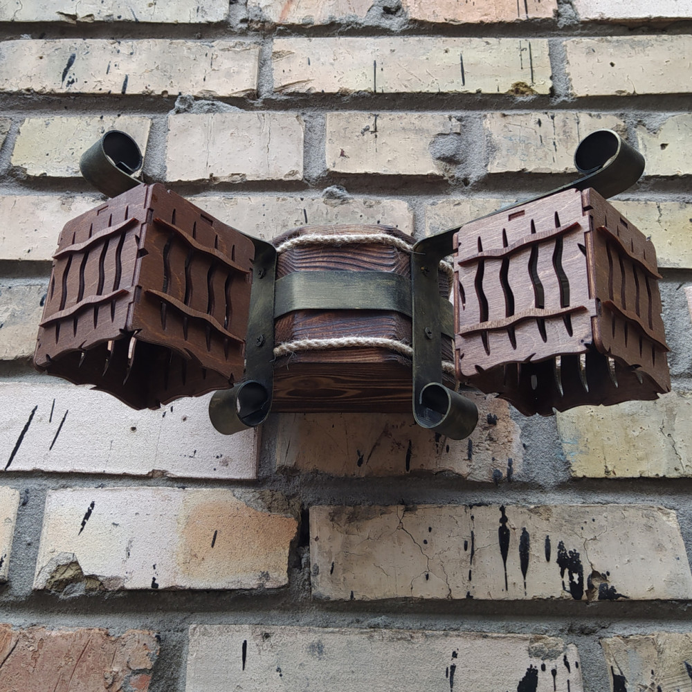 Дерев'яний настінний світильник Бра у стилі Кантрі, на дві лампи із квадратними плафонами.