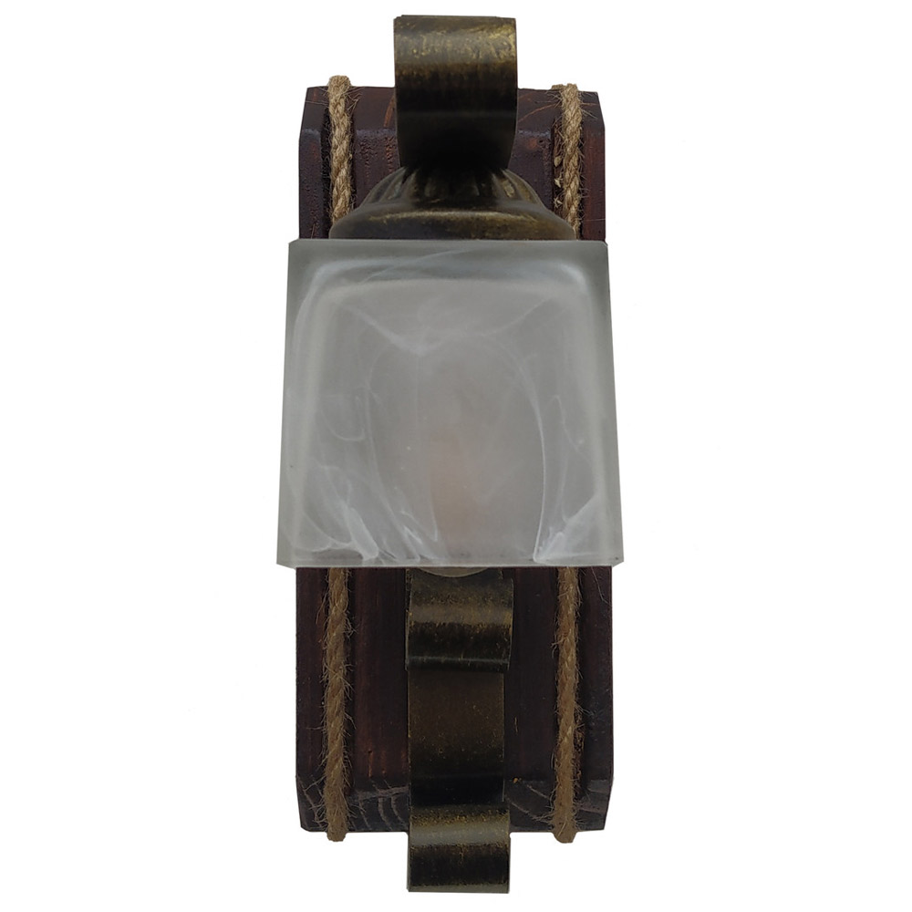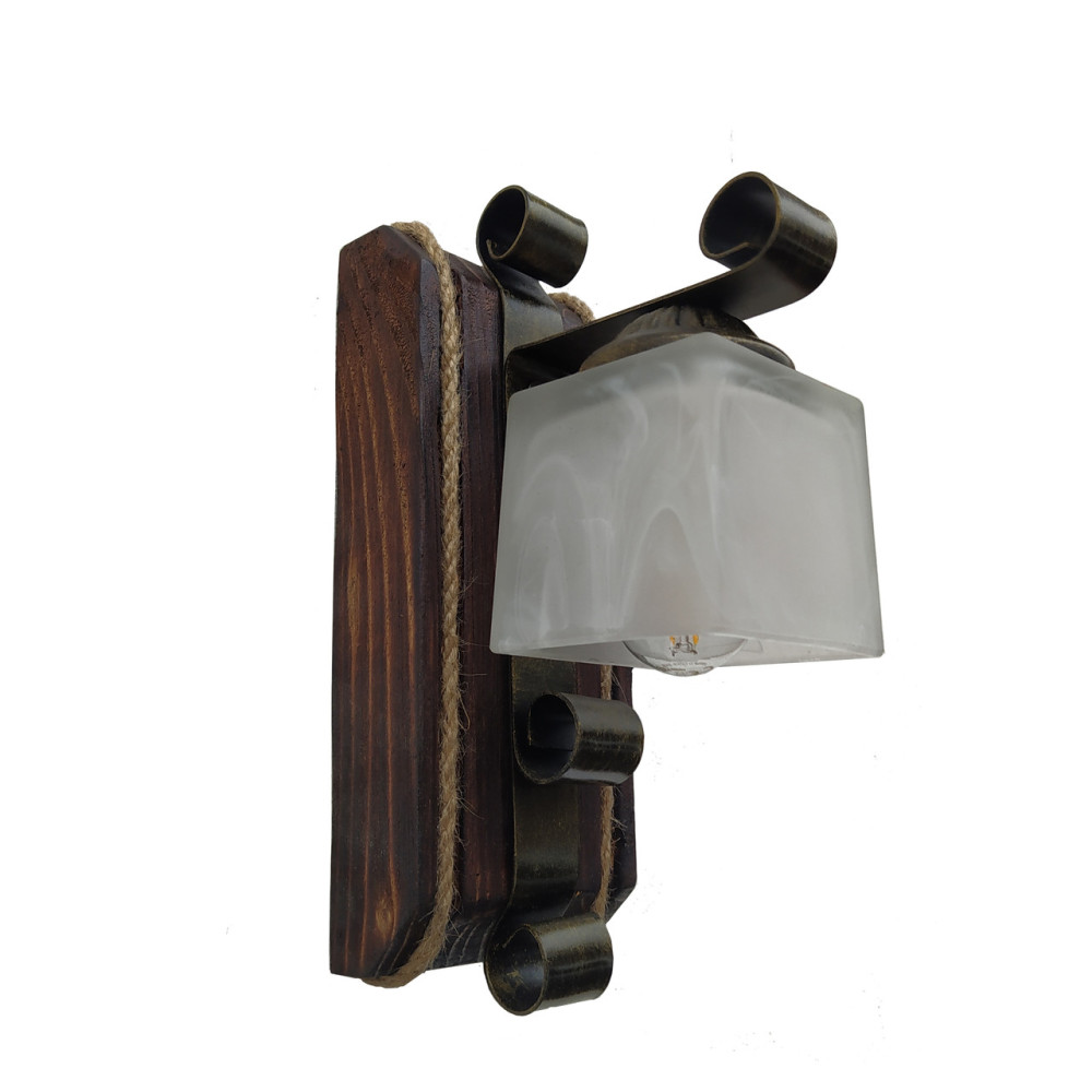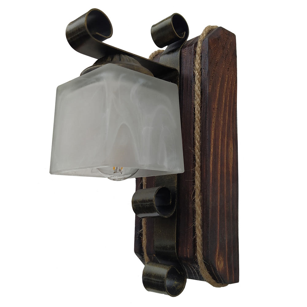 Дерев'яний настінний світильник Бра в стилі Кантрі, на одну лампу зі скляним квадратним плафоном та дерев'яним корпусом.