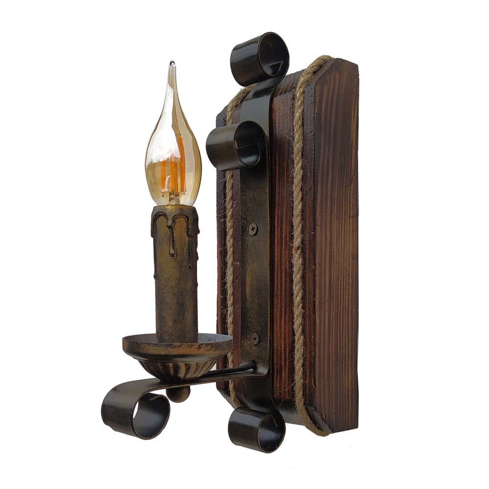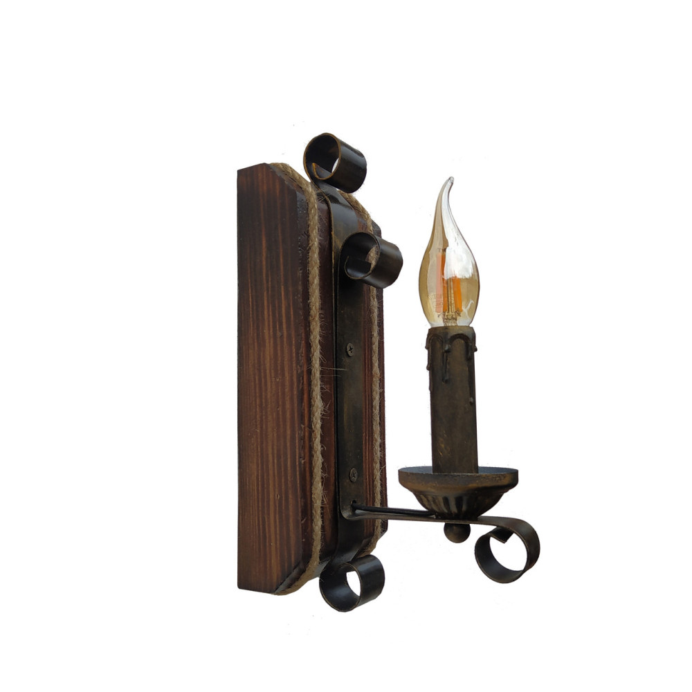 Дерев'яний настінний світильник Бра в стилі Кантрі, на одну лампу свічку без плафона з дерев'яним корпусом.
