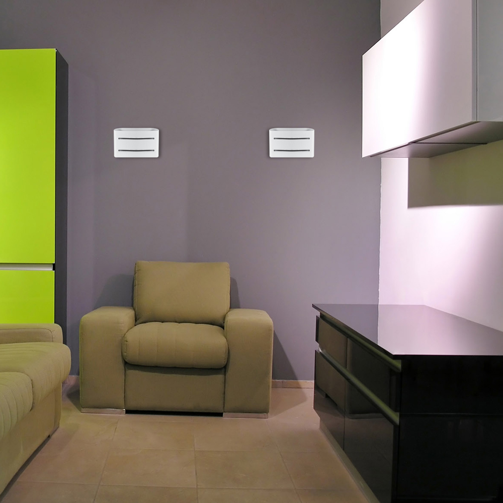 Накладний настінний світильник для інтер'єрного підсвічування. Може встановлюватися як для декоративного освітлення, так і як бра. Сучасний лаконічний дизайн дозволяє використовувати такий світильник для декорування житлових приміщень, так і приміщень кафе, ресторанів, готелів і т.д.