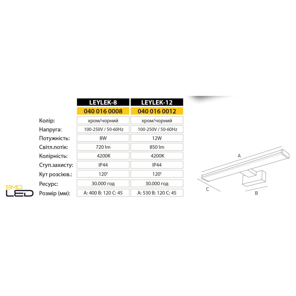 Подсветка зеркал-картин LED "LEYLEK-12" 12W 4200K (040-016-0012-010), LEYLEK-8, Подсветки картин и зеркал LED