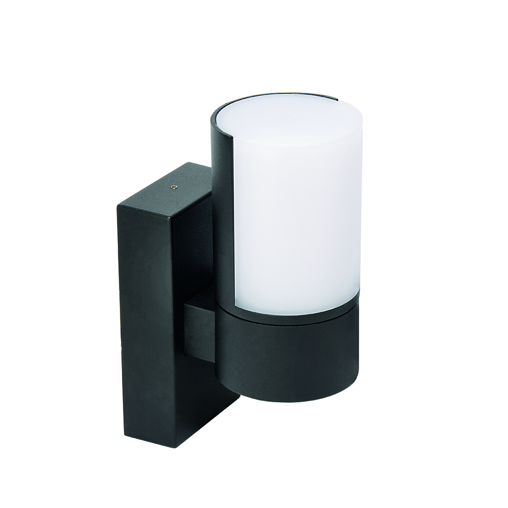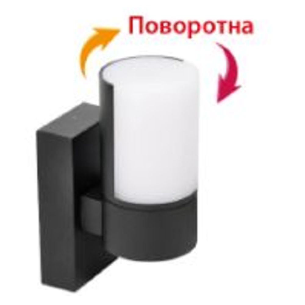 Стильний світлодіодний настінний світильник з плафоном циліндричної форми, на одне джерело світла, живиться від мережі 220В, має сучасний дизайн, регульований напрямок світла, ступінь захисту IP 54.