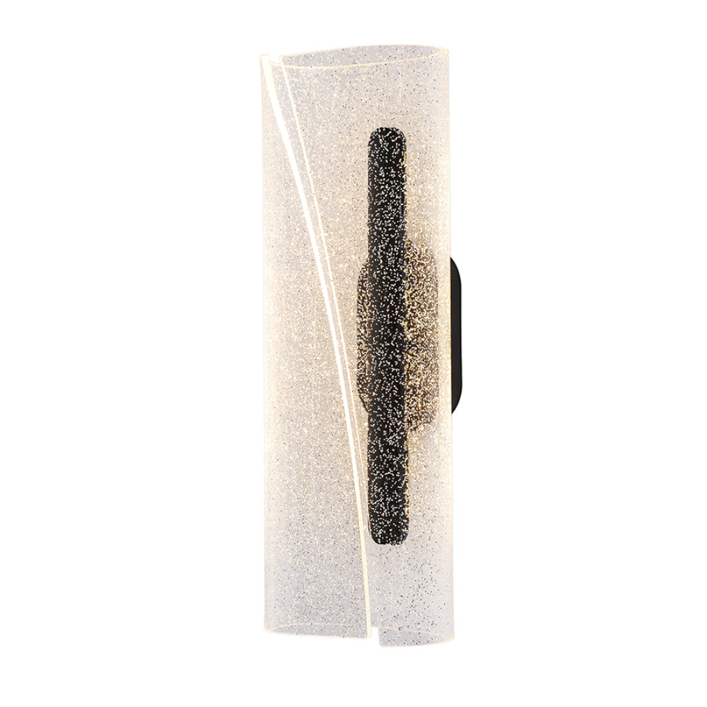 Стильний сучасний настінний LED світильник Бра на одне джерело світла з функцією регулювання колірної температури. Світильник має подовжену форму з елегантним дизайном який представлений у вигляді прозорого акрилового плафона прикрашеного дрібними блискітками і з діагональним прорізом: що створює приємний візуальний ефект при включеному джерелі світла.