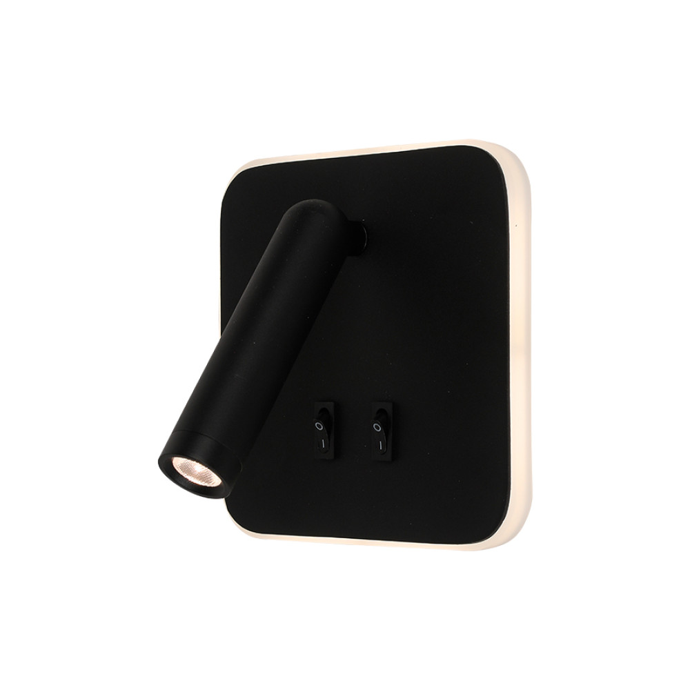Сучасний настінний світлодіодний світильник обладнаний циліндричним плафоном на квадратному плоском корпусі з led підсвічуванням і двома вимикачами.