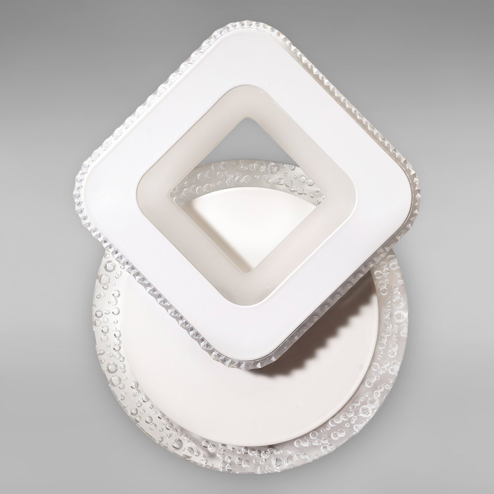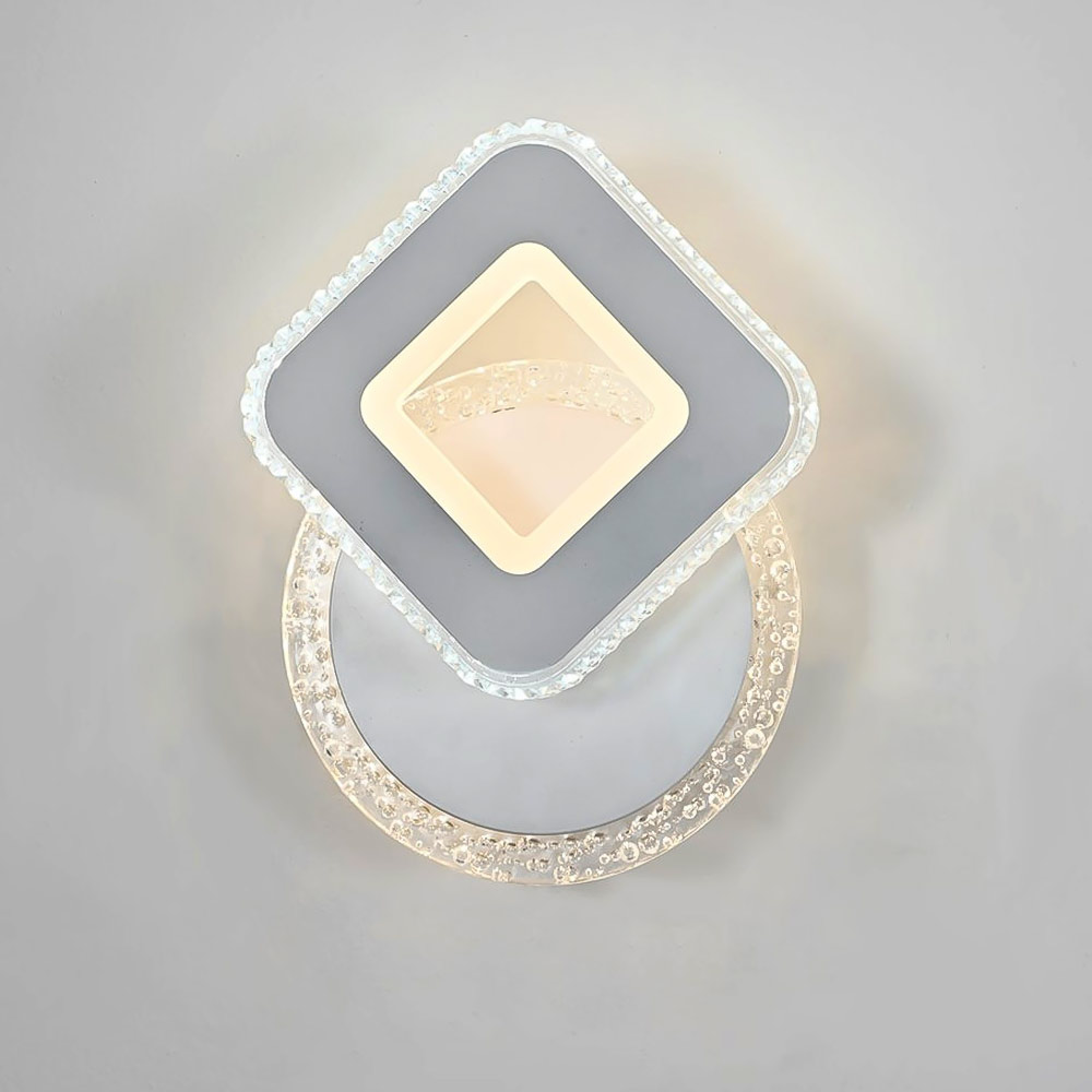 Сучасний настінний світильник Бра на одне джерело світла зі вбудованими світлодіодами, оснащений функцією регулювання колірної температури і підсвічуванням корпусу. Плафон виконаний у вигляді квадратного ромба з декоративним акриловим розсіювачем: що забезпечує м'яке приємне освітлення при включеному джерелі світла.