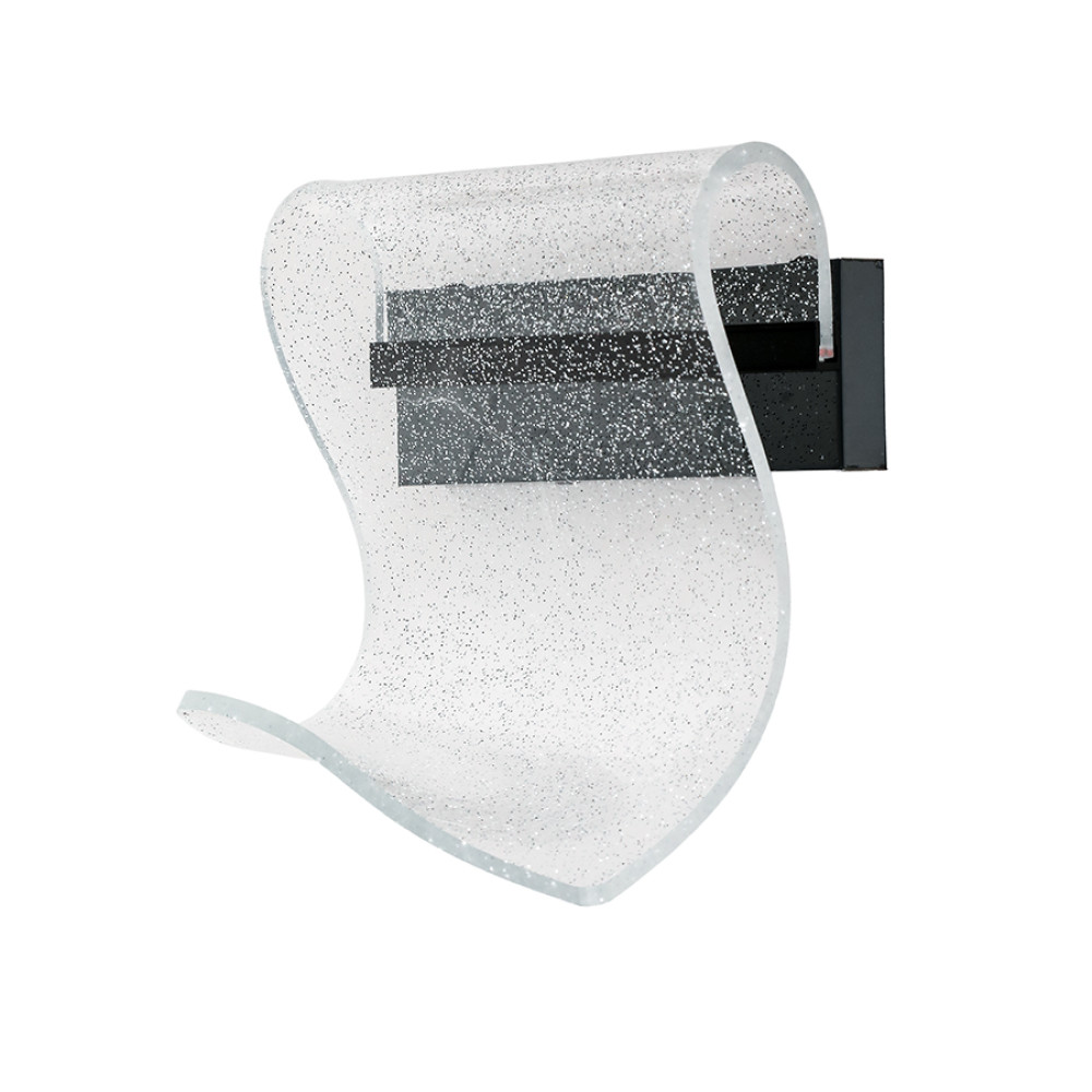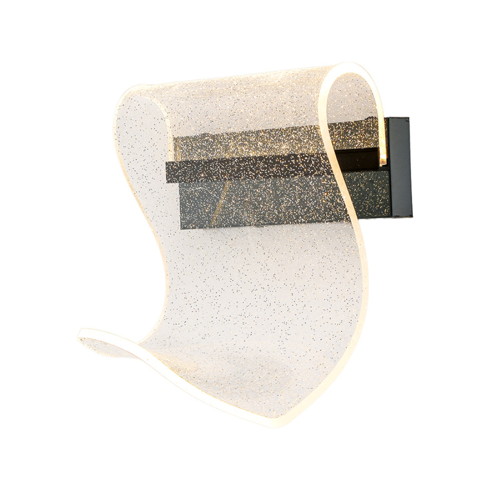 Стильний сучасний настінний LED світильник Бра на одне джерело світла з функцією регулювання колірної температури. Світильник має нестандартну форму з елегантним дизайном який представлений у вигляді акрилового плафона хвилеподібної форми прикрашеного дрібними блискітками: що створює приємний візуальний ефект при включеному джерелі світла.
