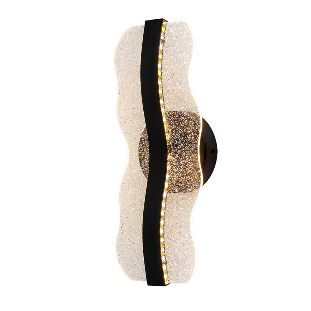 Стильний сучасний настінний LED світильник Бра на одне джерело світла з функцією регулювання колірної температури. Світильник має нестандартну форму з елегантним дизайном який представлений у вигляді плоского акрилового плафона хвилястої форми прикрашеного дрібними блискітками: що створює приємний візуальний ефект при включеному джерелі світла.