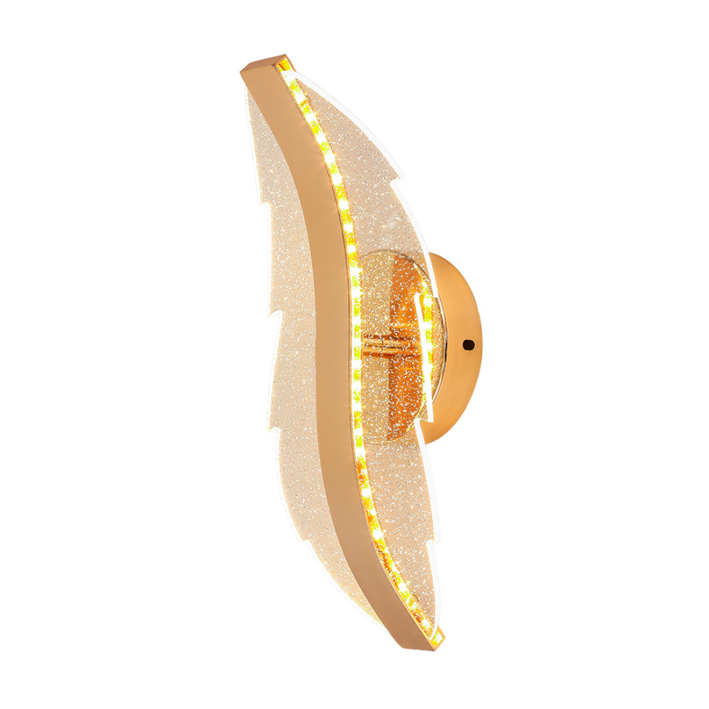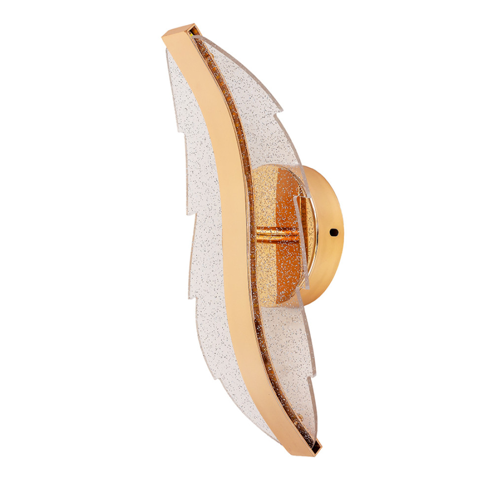 Стильний сучасний настінний LED світильник Бра на одне джерело світла з функцією регулювання колірної температури. Світильник має нестандартну форму з елегантним дизайном який представлений у вигляді плоского акрилового плафона форми листочка прикрашеного дрібними блискітками: що створює приємний візуальний ефект при включеному джерелі світла.