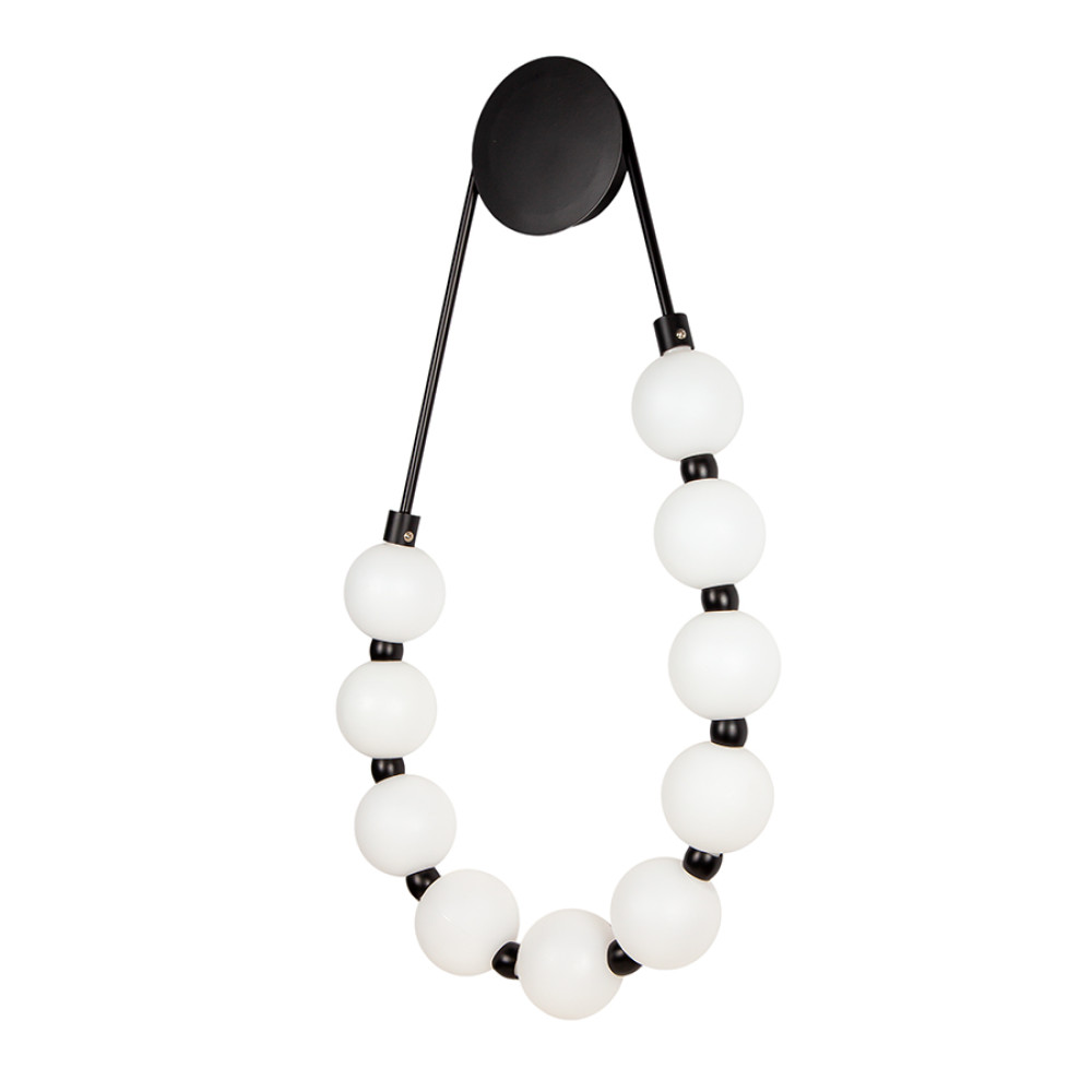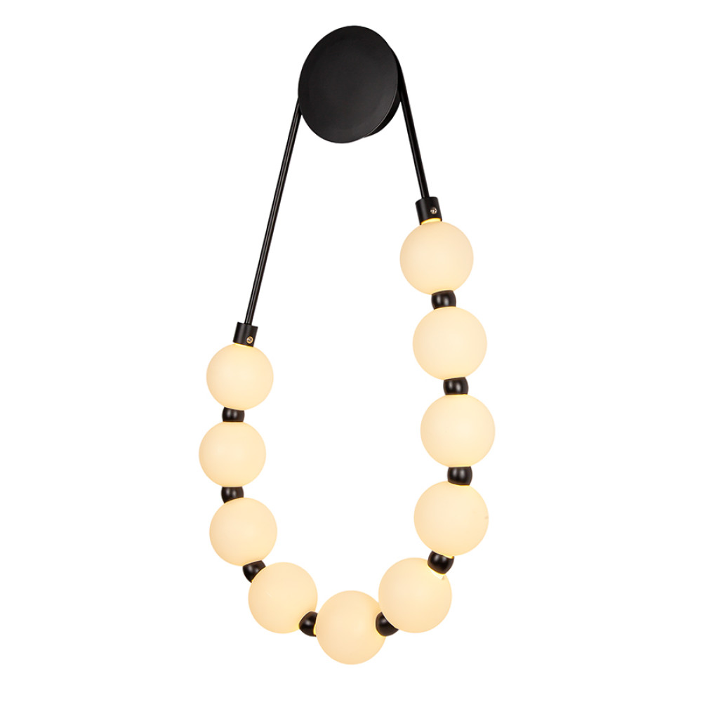 Настінний декоративний LED світильник Бра в сучасному стилі, з джерелом світла у вигляді десяти, послідовно нанизаних, пластикових кульок: що нагадує намисто, на круглому металевому корпусі, має теплу колірну температуру 3200К.
