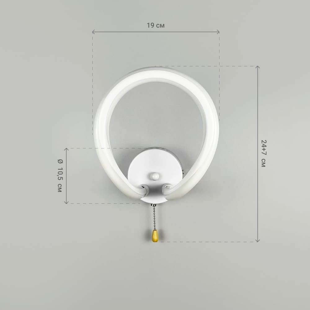 Світлодіодне бра з білим корпусом та силіконовим розсіювачем поєднує в собі сучасний дизайн та функціональність. Його геометрична форма та м’яке світло додають простору затишку і елегантності. Висота бра становить 24 см (з вимикачем — 31 см), ширина — 19 см, а відступ від стіни — 25 см, що робить його ідеальним для розміщення в будь-якому приміщенні. Світильник має три світлові режими: тепле, нейтральне та холодне світло, з потужністю 20 Вт (по 10 Вт для кожного з двох неосновних режимів). Шнурочок-вимикач на корпусі додає зручності у використанні. Це бра стане чудовим вибором для вітальні, спальні або коридору, створюючи сучасний акцент та комфортну атмосферу в інтер’єрі.