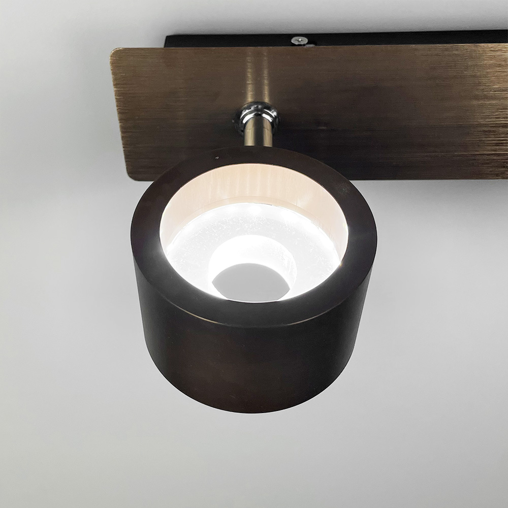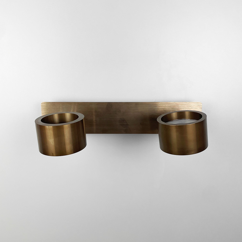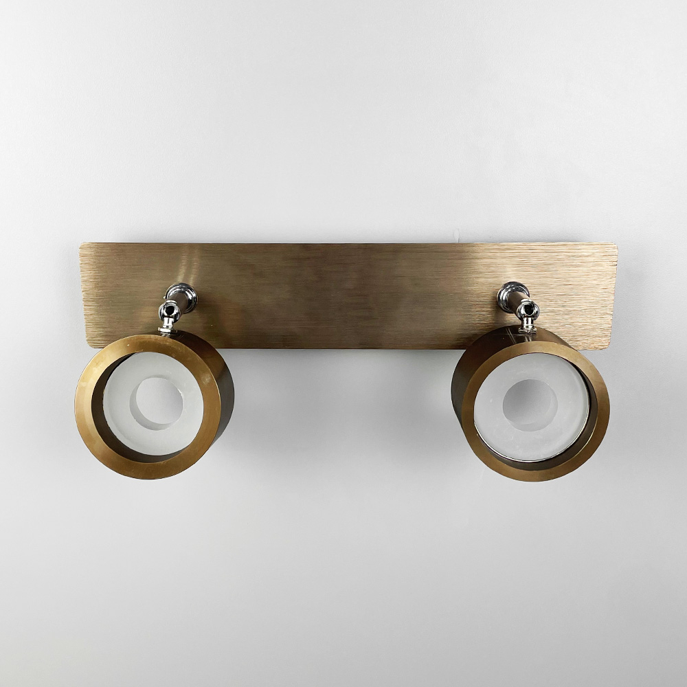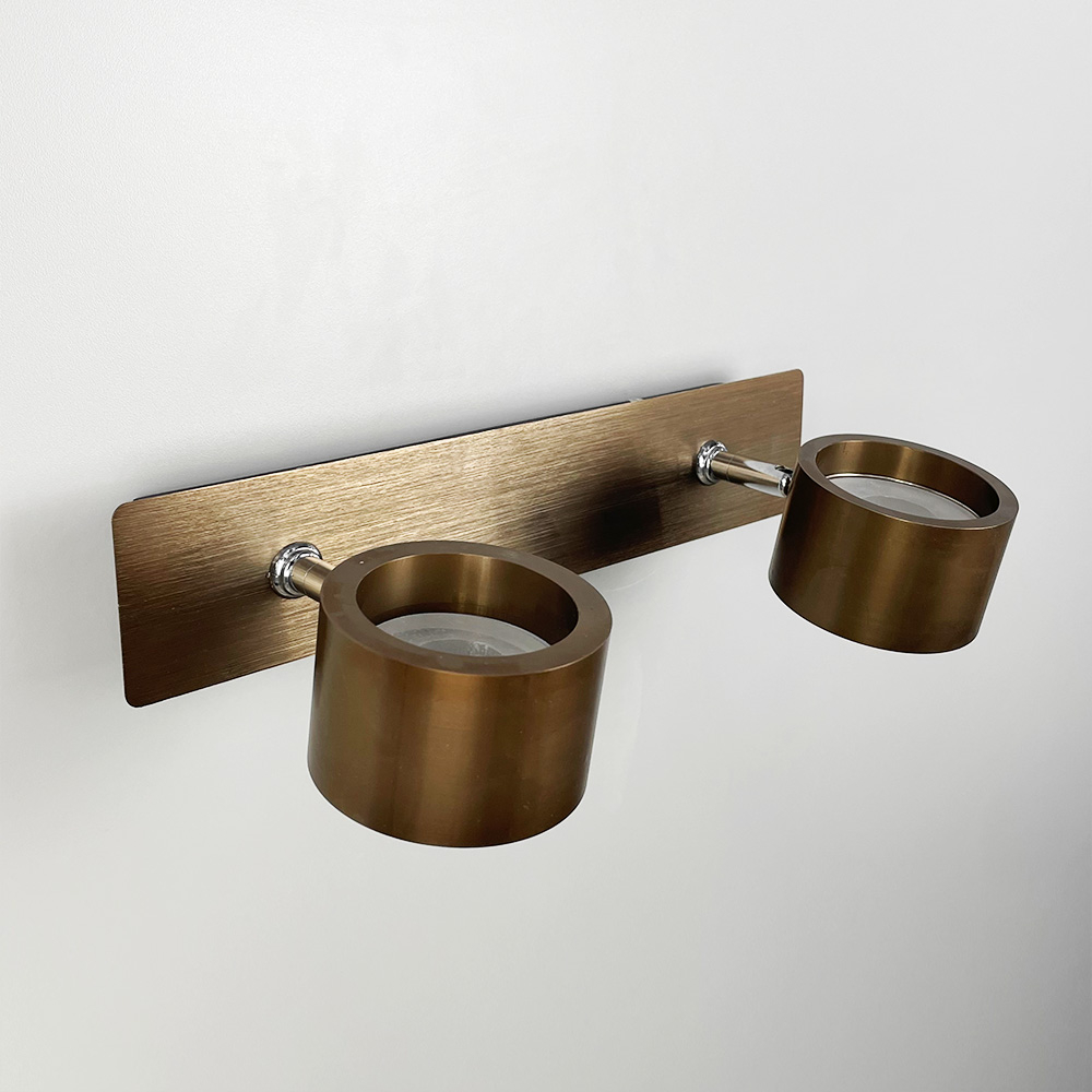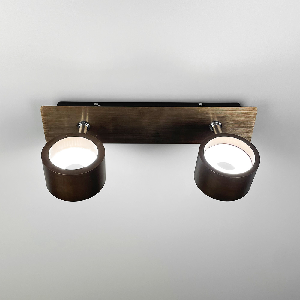 Стіновий світильник виготовлений із металу кольору Coffee та доповнений хромованою фурнітурою. Довжина корпусу - 32 см, відступ від стіни -17 см. Дизайн світильника гармонійно доповнюють два круглі плафони (8х5 см) із вбудованими світлодіодами (7 Вт), що випромінюють світло нейтральної температури. Між основою і плафонами є регулюючий механізм, завдяки якому можна повертати та направляти світловий потік. Перевагою даної моделі також є наявність вимикача на корпусі світильника.