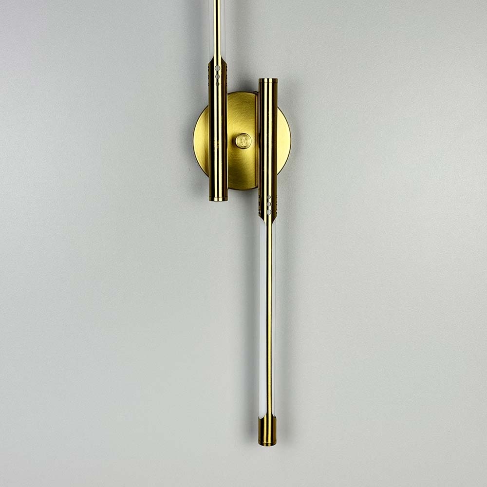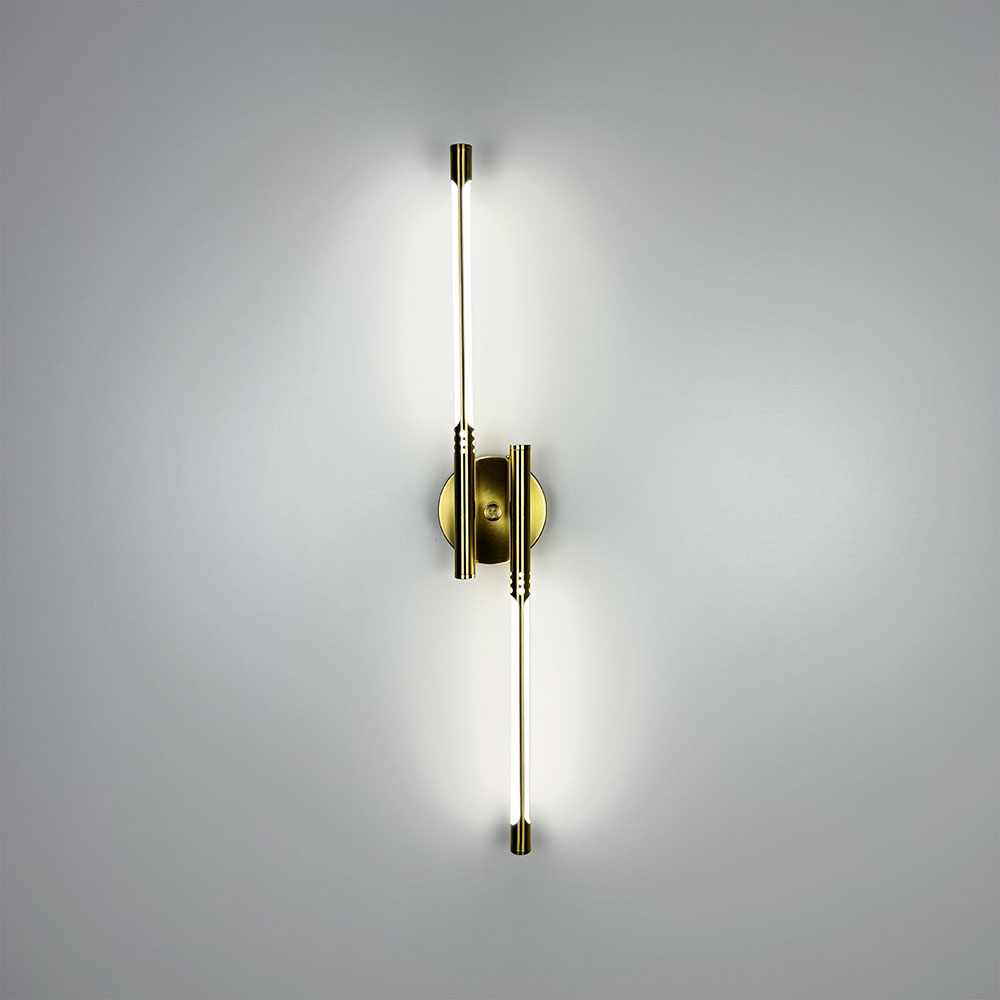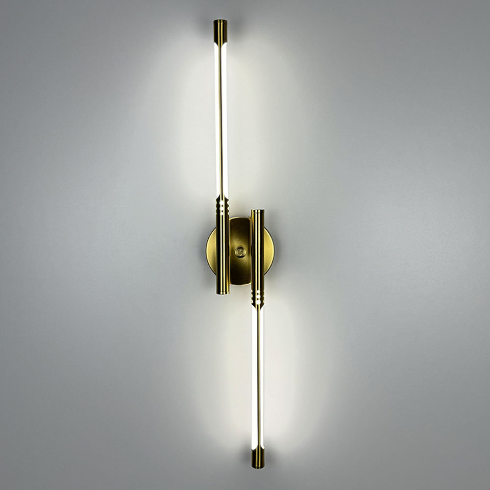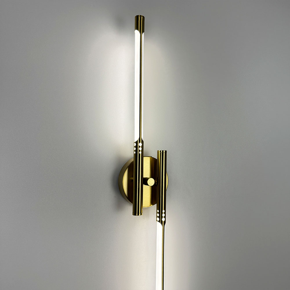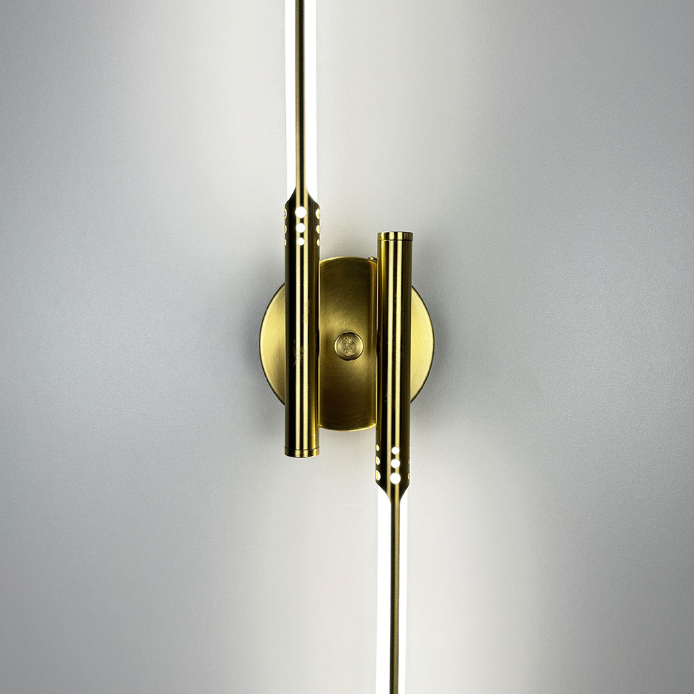 Витончене настінне бра в металевому корпусі кольору латуні стане елегантним доповненням сучасного інтер’єру. Світильник має продуману конструкцію з довжиною 62 см і шириною 10 см, а його мінімальний відступ від стіни - лише 5 см, що дозволяє гармонійно інтегрувати його навіть у компактні приміщення. Дизайн бра включає круглу металеву основу (10х2,5 см), від якої в обидві сторони розходяться тонкі трубки, що містять вбудовані світлодіоди під розсіювачем. Особливого шарму додає вишукане різьблення на трубках, яке привертає увагу й підкреслює естетику освітлювального елементу. Бра оснащене світлодіодами з нейтральною температурою світла, що забезпечує приємне м’яке освітлення, створюючи затишну атмосферу. Потужність світильника становить 16 Вт, чого достатньо для забезпечення якісного підсвічування без зайвого енергоспоживання. Цей світильник ідеально вписується в інтер’єри сучасного стилю, лофт або мінімалізму, виступаючи стильним акцентом у будь-якому просторі - від вітальні до спальні.