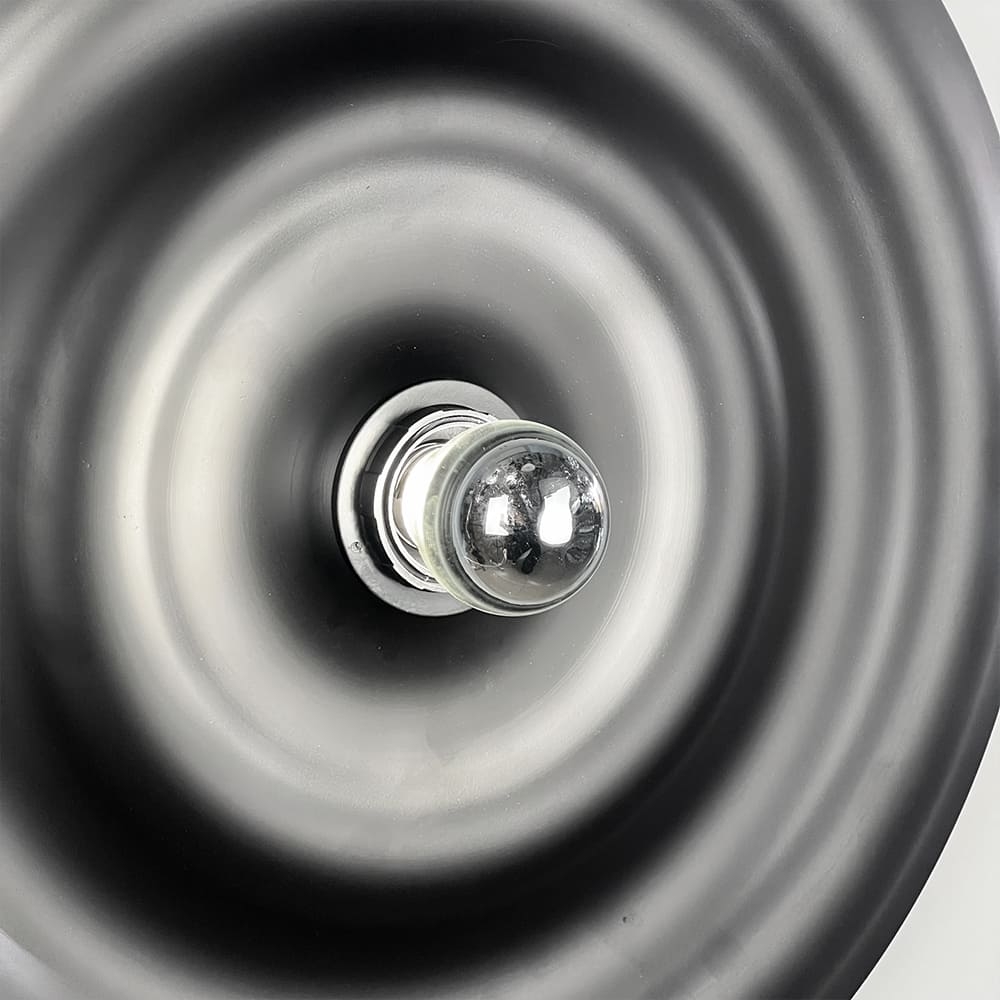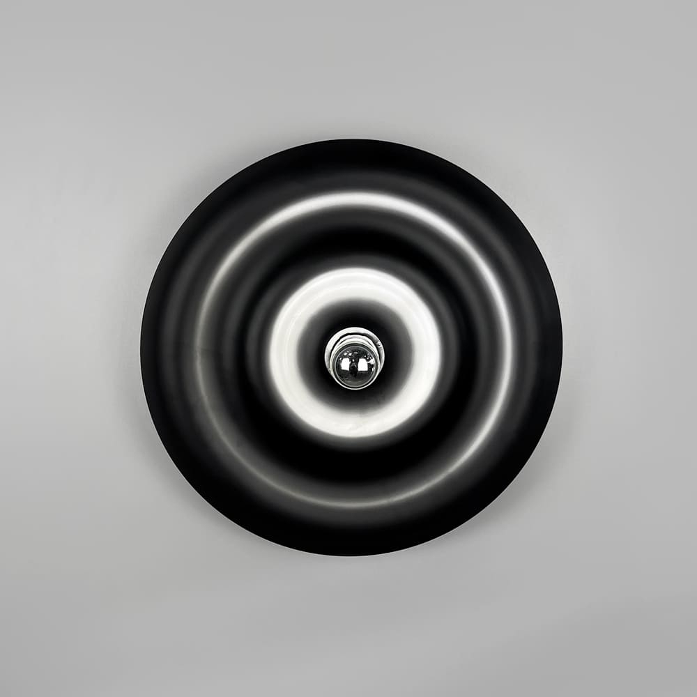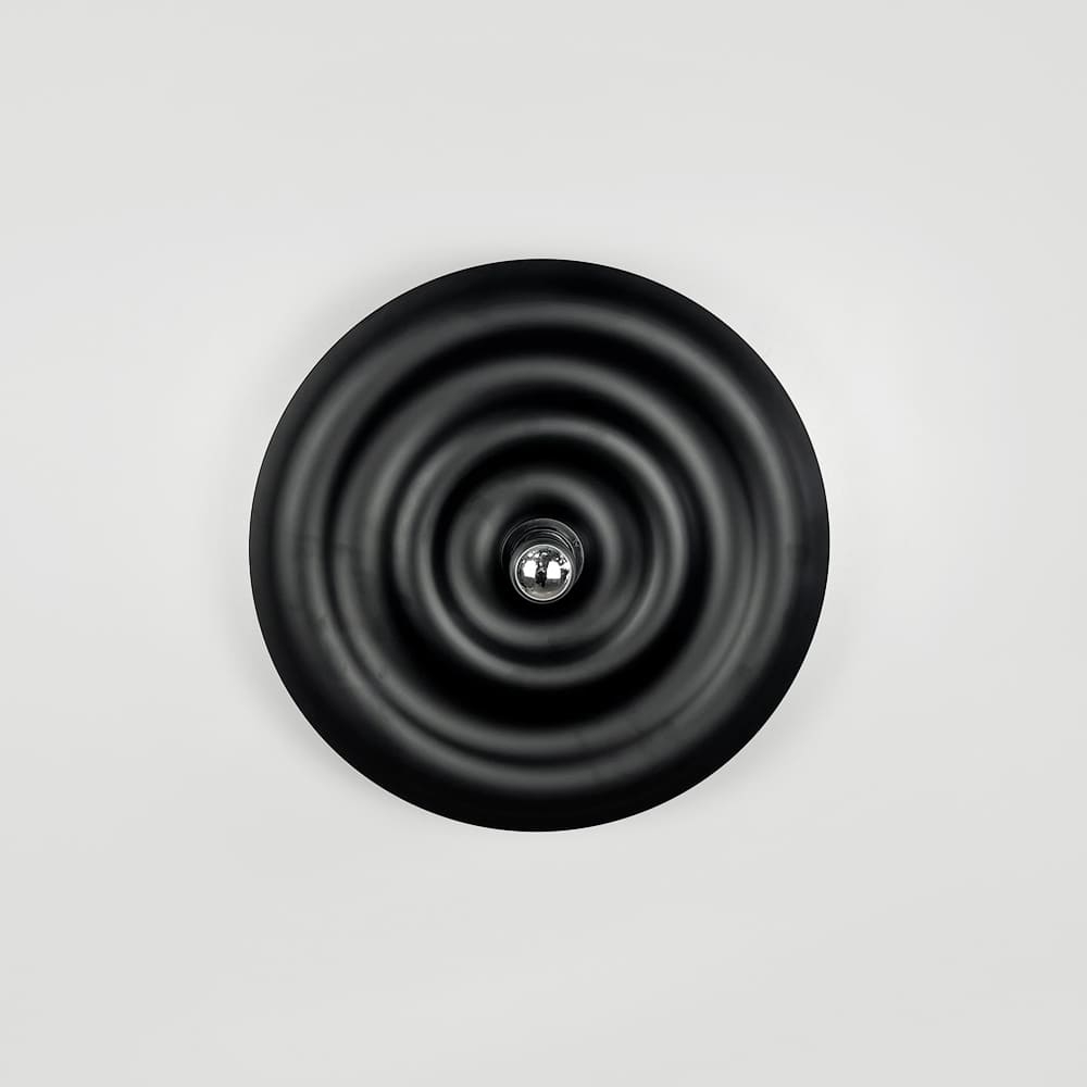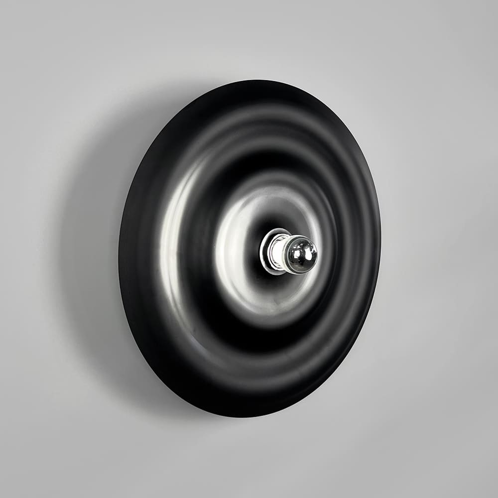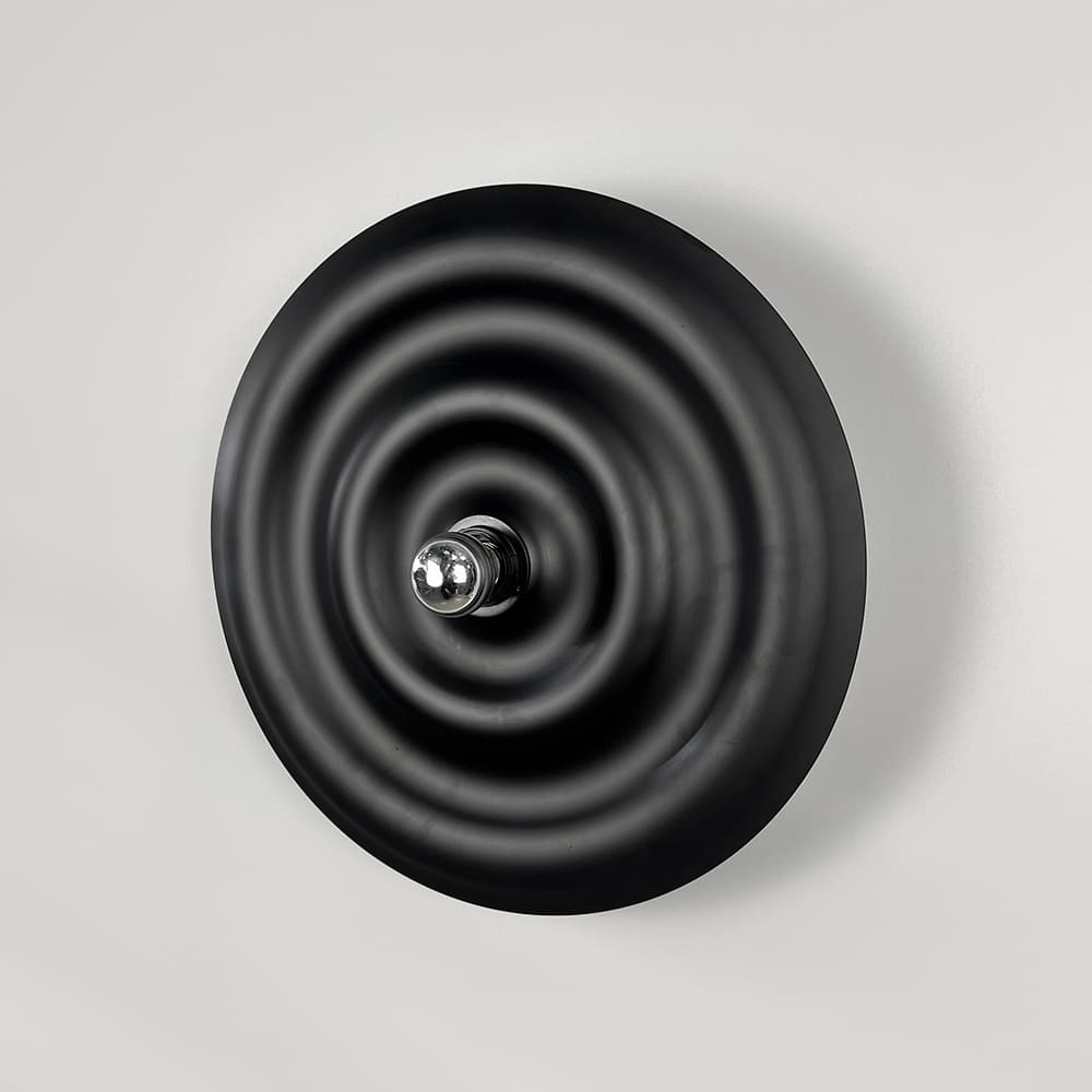 Унікальний настінний світильник-бра Ø 40 см у чорному матовому корпусі — це втілення сучасного дизайнута витонченої форми. Його вигнута поверхня створює ефект глибини, а світловий центр з лампочкою (входить у комплект) додає композиції особливого шарму. При ввімкненні світла виникає неймовірний світловий віблиск, який плавно розтікається по чорному корпусу, утворюючи заворожуючу гру світла й тіні. Матове покриття надає світильнику благородного вигляду, роблячи його не просто джерелом освітлення, а стильним акцентом у просторі. Завдяки загальній відстані від стіни 14 см, модель виглядає легкою та гармонійно інтегрується в сучасний інтер’єр — від мінімалізму до арт-деко. Таке декоративне бра стане чудовим вибором для вітальні, спальні чи передпокою, додаючи приміщенню атмосферності та естетичного балансу.