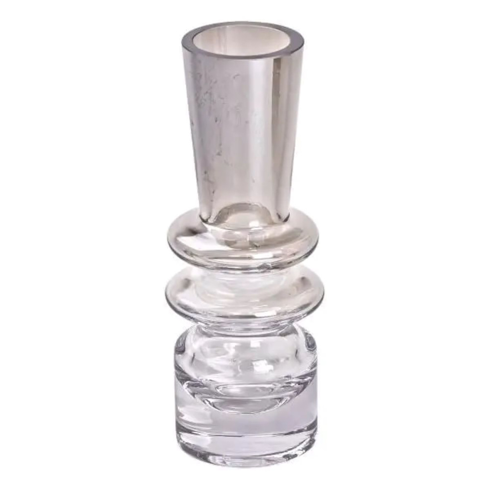 Декоративна скляна ваза виготовлена з прозорого скла високої якості. Вона має елегантний дизайн, який дозволяє їй органічно вписуватись у будь-який інтер'єр. Висота вази становить 19.5 см, діаметр – 5.5 см, що робить її універсальною для різноманітних квіткових композицій або як самостійний декоративний елемент.