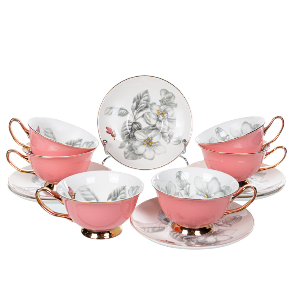 Чайний сервіз Lefard на 6 персон 975-059 рожевий із золотою облямівкою - це вишуканий керамічний набір на 6 персон у ніжному білому кольорі.