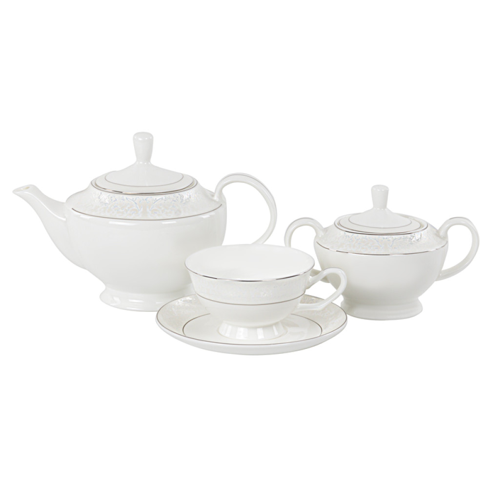 Чайний сервіз Lefard на 6 персон з чайником 440-111 білий - це вишуканий керамічний набір на 6 персон ніжного білого кольору.