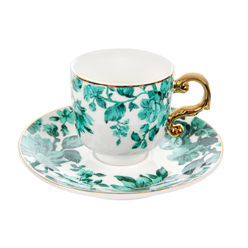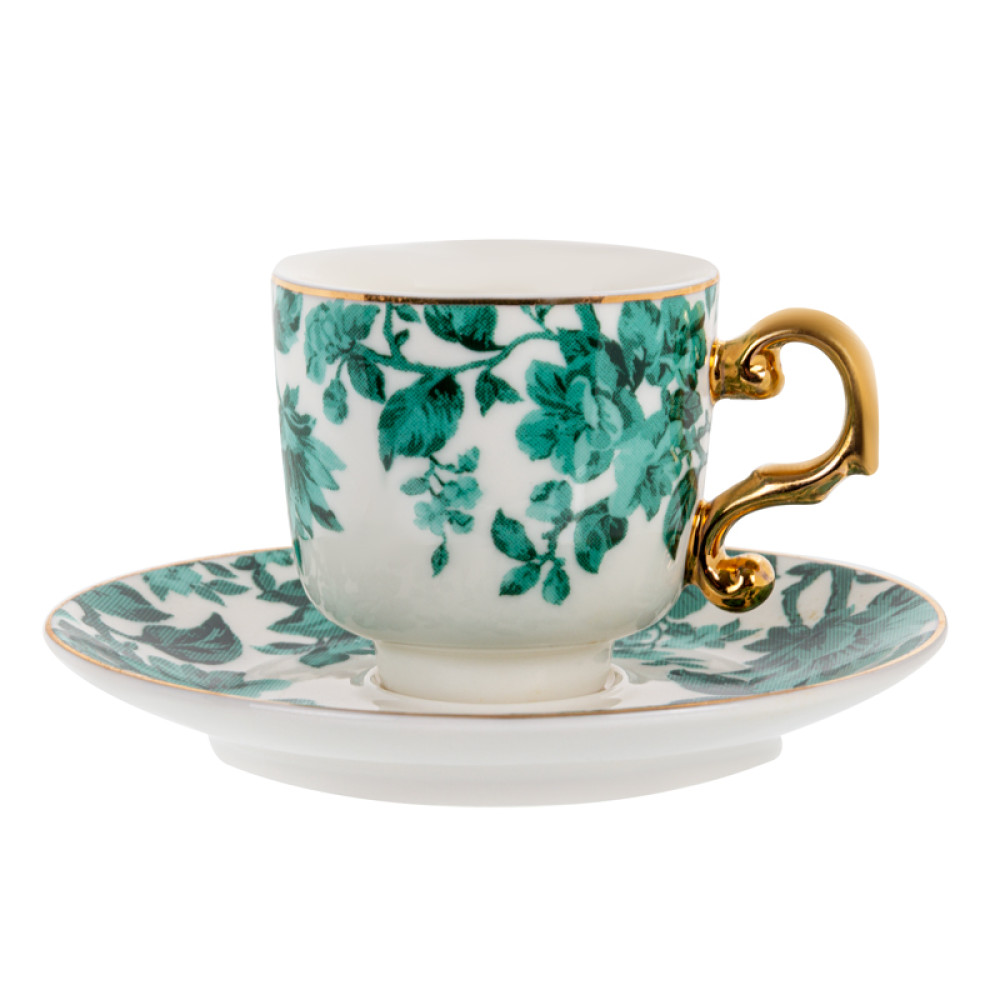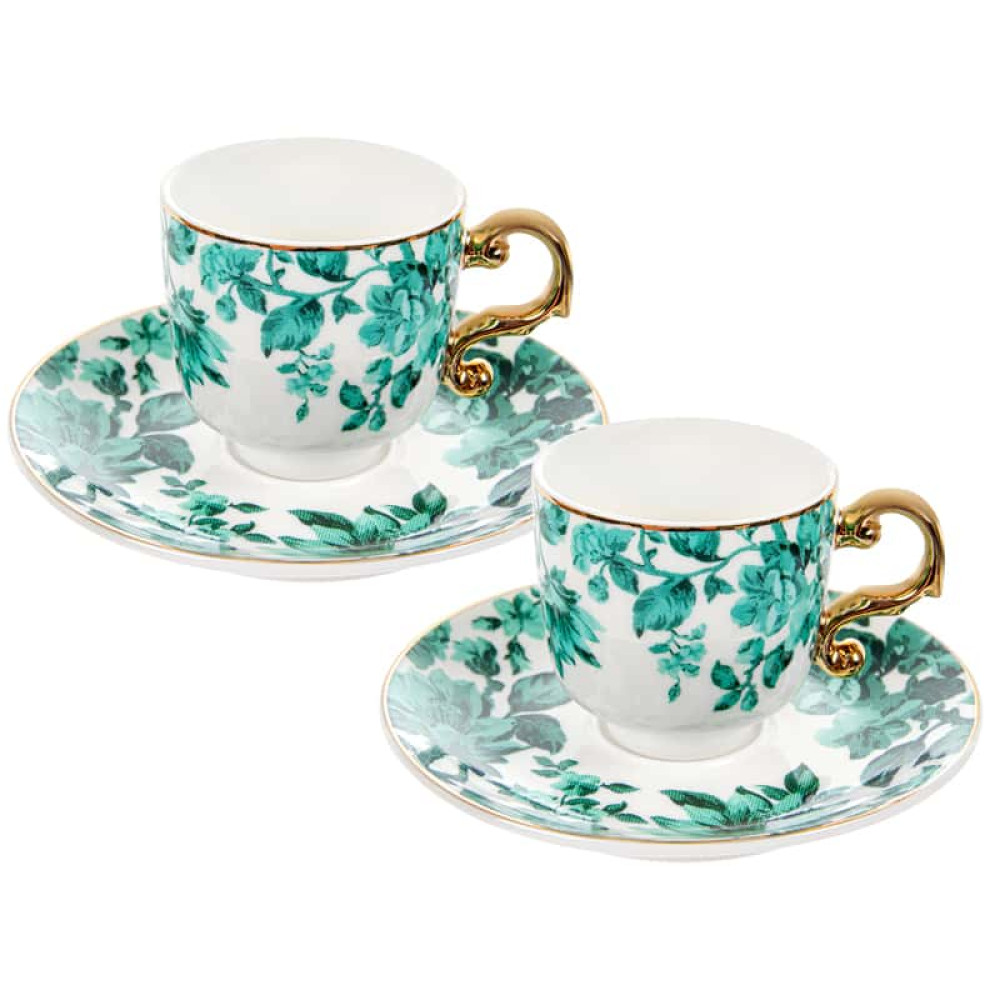Набір кавових чашок фарфорових з блюдцем на 2 персони Lefard "Смарагдовий сад" 100мл (925-056)