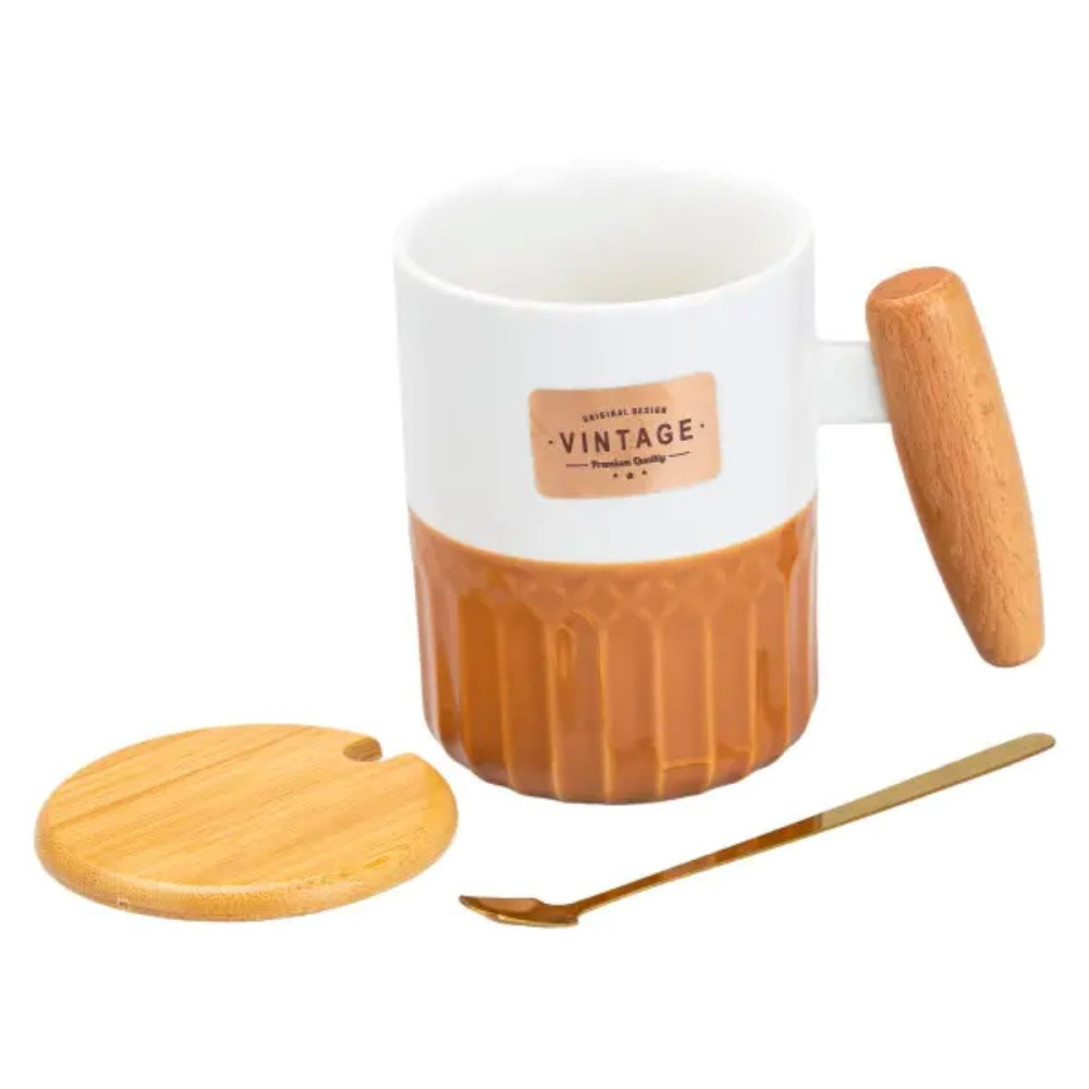 Чашка фарфоровая с бамбуковой крышкой и ручкой 400 мл. Эта красивая фарфоровая чашка с бамбуковой крышкой и ручкой однозначно станет прекрасным подарком! Она неприхотлива в эксплуатации, отлично сохраняет тепло и подойдет для горячих и холодных напитков. Основные характеристики чашки Объем 400 мл; Высота 11.0 см; Диаметр 8.0 см. Основные преимущества чашки Сохранение тепла: фарфор прекрасно сохраняет тепло напитка, позволяя вам наслаждаться чаем или кофе дольше. Экологичность: фарфор - это натуральный и безопасный материал, не выделяющий вредных веществ. Универсальность: фарфоровые чашки подходят для горячих и холодных напитков. Практичность: фарфоровые чашки легко моются и не впитывают запахи. Долговечность: фарфоровые чашки при правильном уходе прослужат вам долгие годы. Вы можете купить чашку и другие товары в нашем интернет магазине по доступной цене с доставкой по Украине.