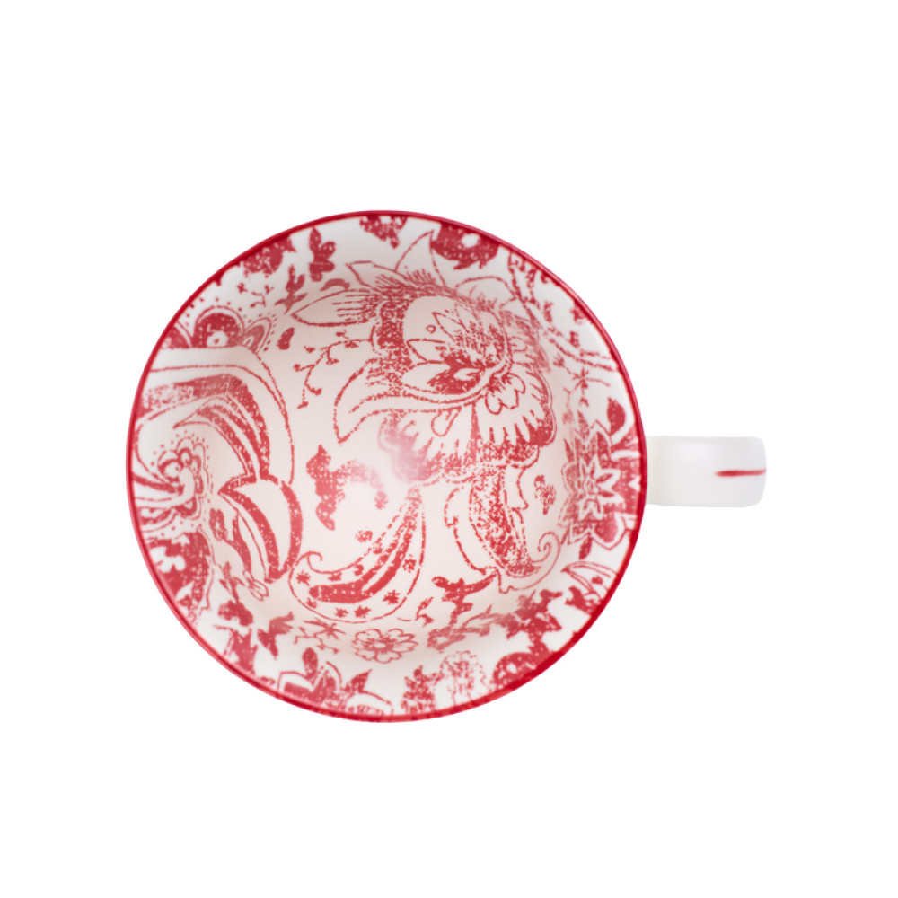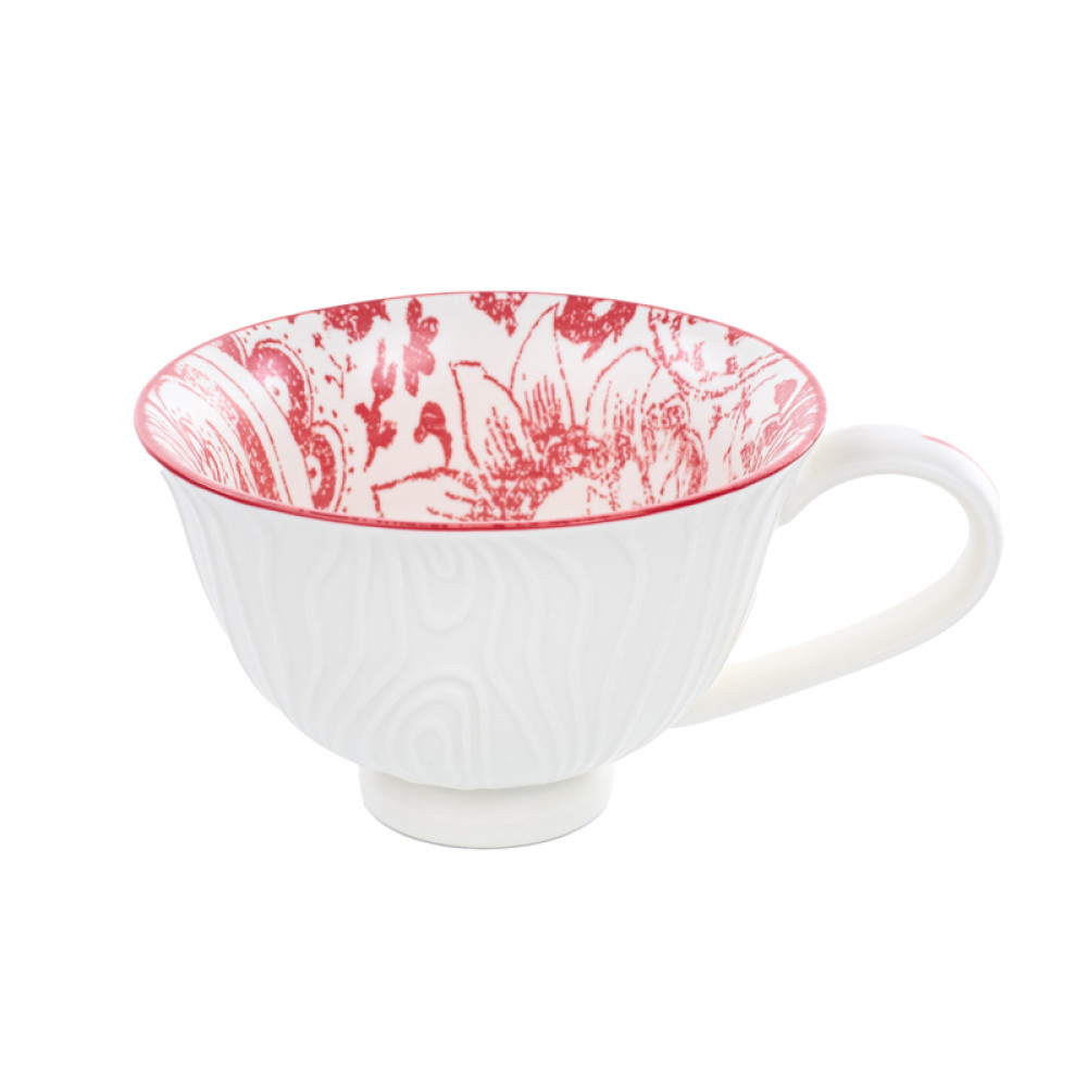 Чашка порцелянова Lefard "Листя" 420 мл Білий + червоний малюнок ( 936-008)