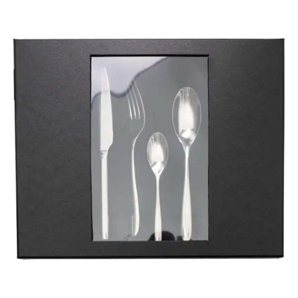 Набор столовых приборов серебристого цвета рассчитан на 6 персон и включает 24 предмета: 6 столовых ложек, 6 чайных ложек, 6 вилок и 6 столовых ножей. Классический дизайн без лишних декоративных элементов делает его универсальным для повседневного использования и праздничной сервировки. Благодаря сбалансированному весу и эргономичной форме приборы удобно лежат в руке. Основные характеристики: Количество предметов в наборе: 24 шт.; Количество персон: 6; Материал: нержавеющая сталь; Упаковка: коробка; Размеры приборов: длина столового ножа: 23.7 см; длина столовой ложки: 20.5 см; длина столовой вилки: 20.5 см; длина чайной ложки: 15 см. Комплектация набора: столовый нож: 6 шт.; столовая ложка: 6 шт.; столовая вилка: 6 шт.; чайная ложка: 6 шт.. Изготовленные из нержавеющей стали, они отличаются устойчивостью к коррозии, механическим повреждениям и потускнению. Полированная поверхность придает привлекательный вид и обеспечивает легкую очистку. Лезвия ножей имеют оптимальную остроту для комфортного нарезания, а форма ложек и вилок способствует удобному приему пищи. Набор подходит для домашнего использования, заведений общественного питания или в качестве подарочного варианта. Все предметы можно мыть в посудомоечной машине без риска потери блеска или повреждения материала. Благодаря стандартным размерам и нейтральному дизайну комплект легко сочетается с различными стилями посуды.