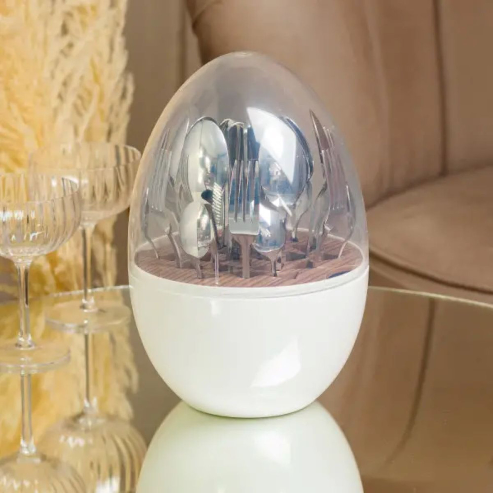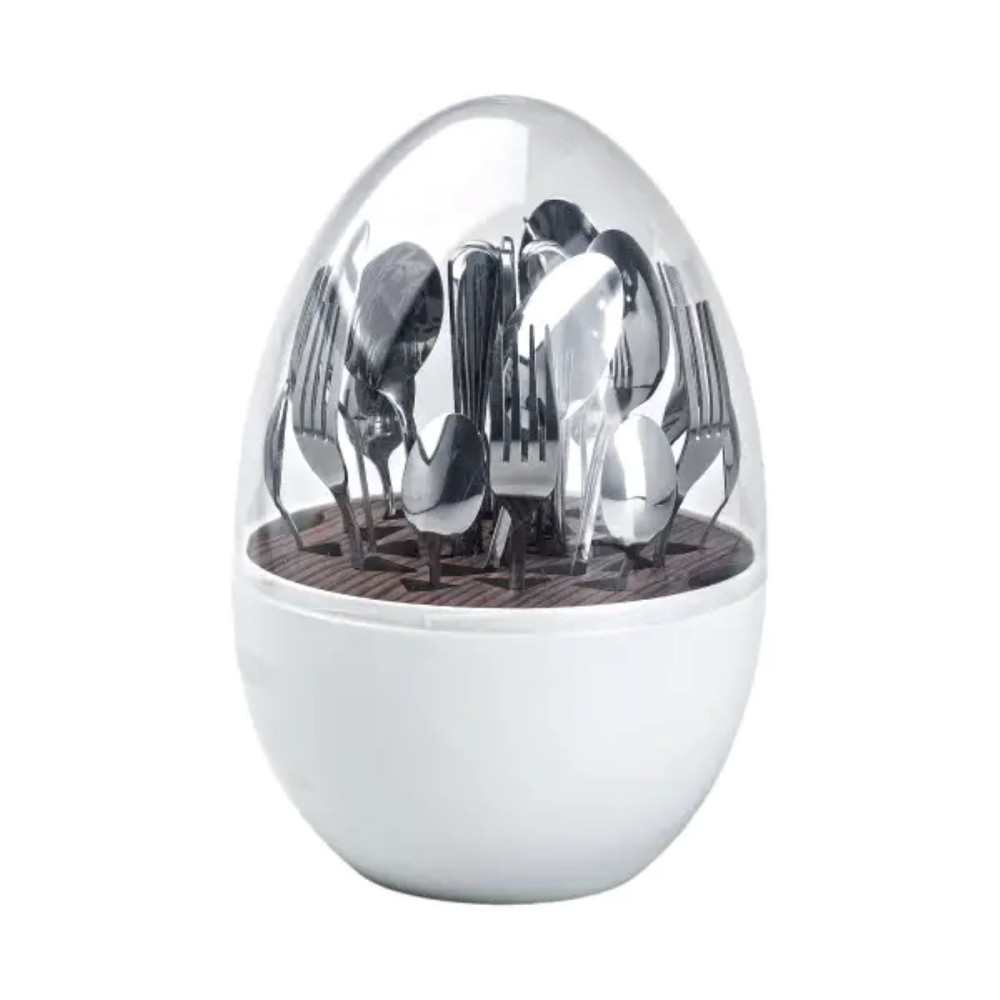 Немає відгуків про товар Набор столовых приборов на 6 персон из нержавеющей стали 24 штуки с подставкой Яйцо Белый HP7889