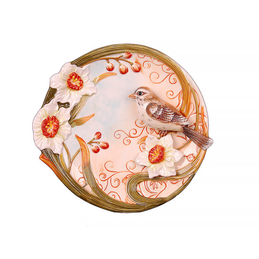 Декоративна керамічна тарілка Light House "Пташка в нарцисах" рожева 21 см (59-406) - додасть настрою відчуття літа в домашній інтер'єр.