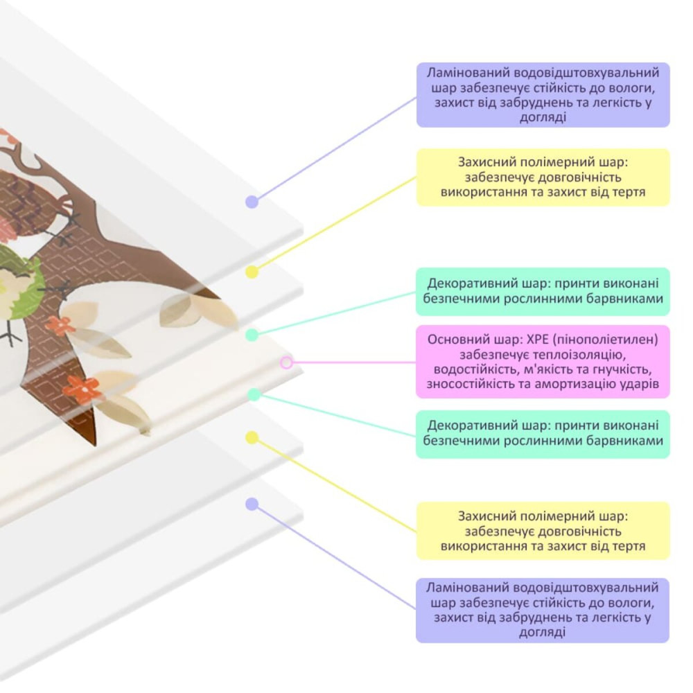 Детские развивающие термоковрики изготавливаются из мультифункционального, нетоксичного и гипоаллергенного материала XPE (вспененный и прессованный полимер этилена), объединяет в себе множество преимуществ: теплоизоляция, влагостойкость, износоустойчивость, простота в уходе, мягкость, гибкость и амортизация падения малыша, обеспечивая детям комфортную и безопасную игровую поверхность.