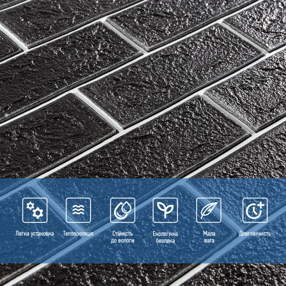 Немає відгуків про товар Панель стеновая 70*70cm*5mm чёрный кирпич с белым (D) SW-00001503