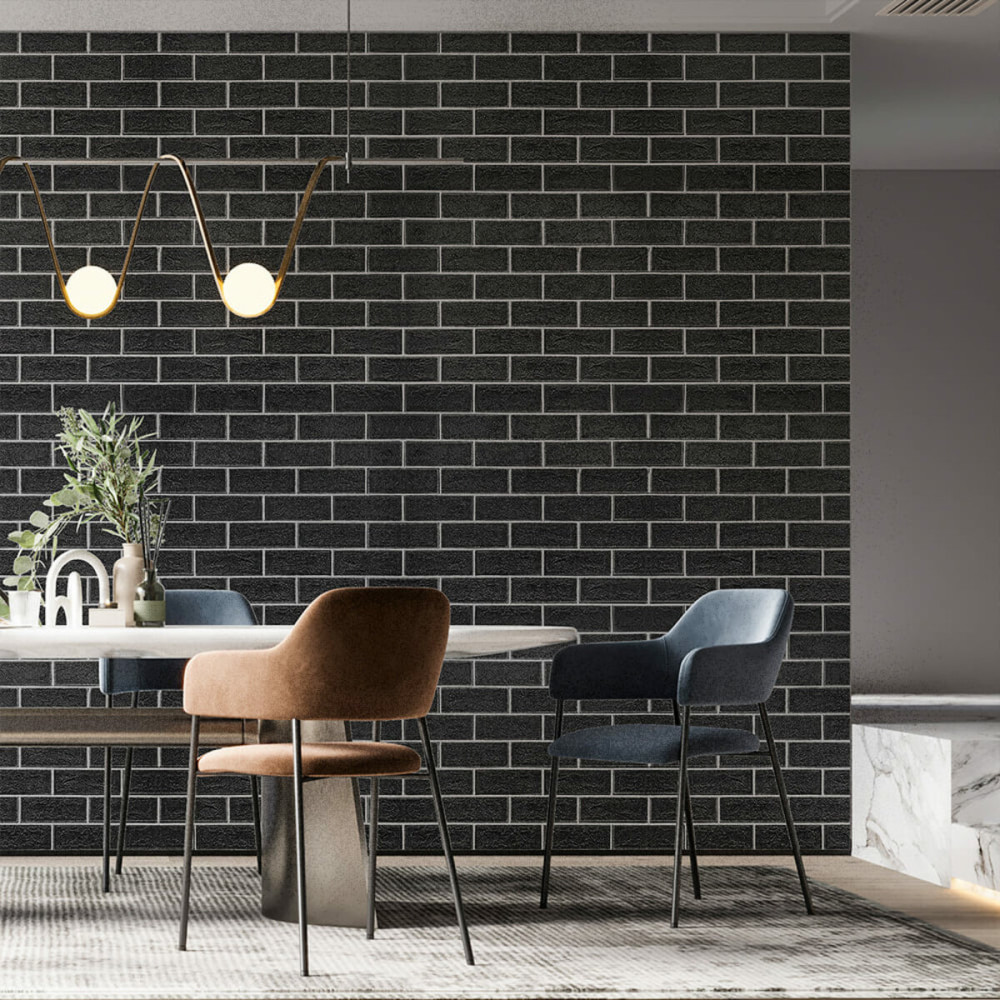 Самоклеящиеся панели с универсальным дизайном “под коричневый кирпич” подходят для поклейки как в частном доме: