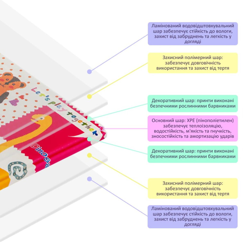 Детские развивающие термоковрики изготавливаются из мультифункционального, нетоксичного и гипоаллергенного материала XPE (вспененный и прессованный полимер этилена), объединяет в себе множество преимуществ: теплоизоляция, влагостойкость, износоустойчивость, простота в уходе, мягкость, гибкость и амортизация падения малыша, обеспечивая детям комфортную и безопасную игровую поверхность.