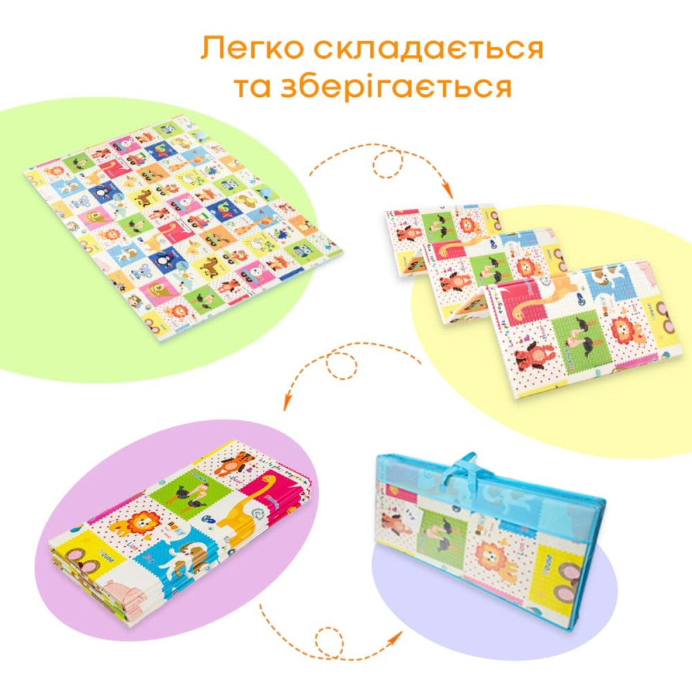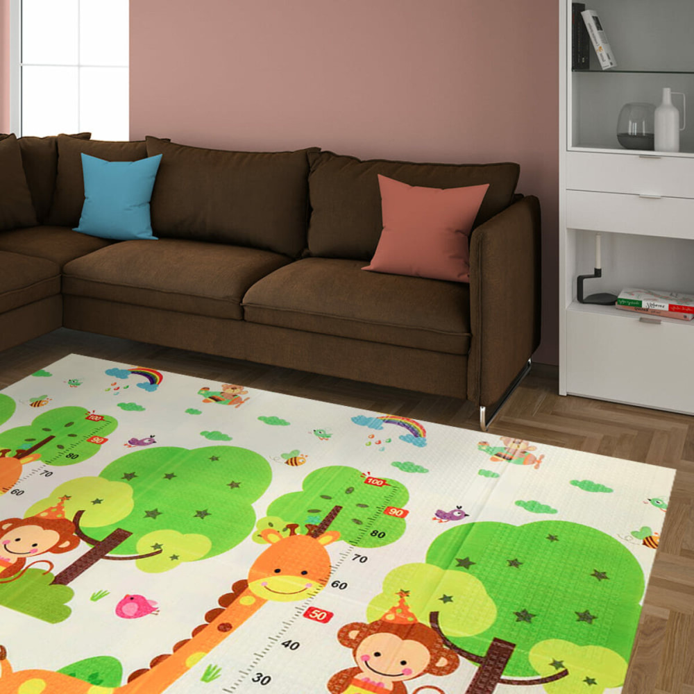 - Двусторонность ковриков с разными принтами: яркие цвета и насыщенные рисунки на одной стороне могут привлекать внимание и стимулировать познавательные процессы, сенсорное развитие малыша, а более сдержанные оттенки второй стороны служат для спокойного отдыха и релаксации ребенка.