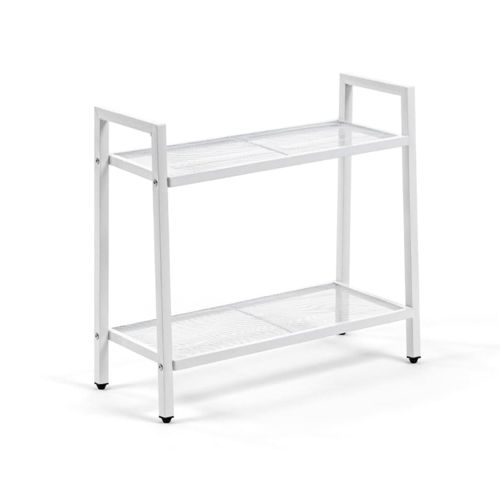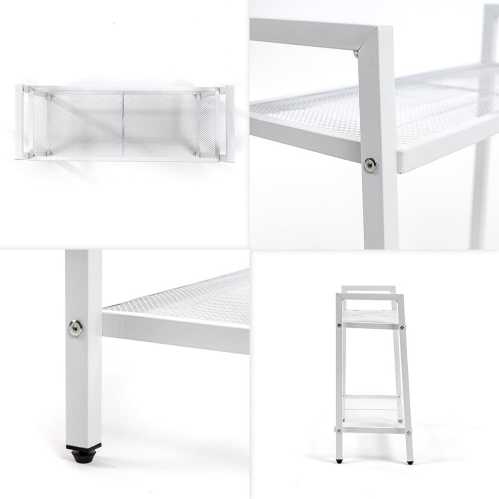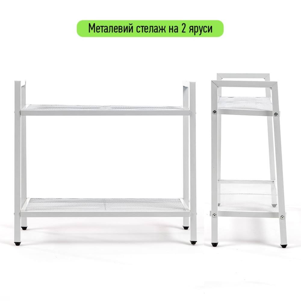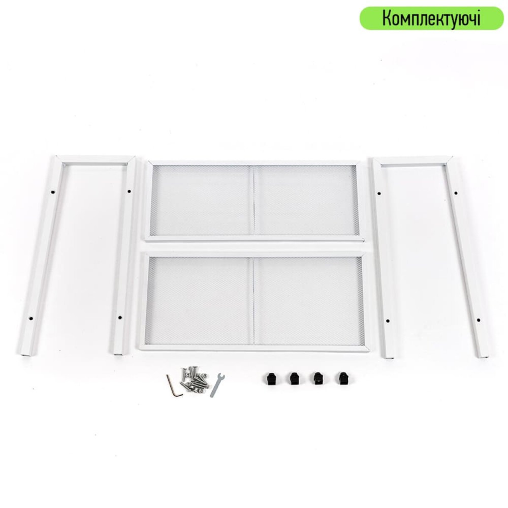 Каждый стеллаж представляет собой прочную металлическую конструкции, выполненную из сборного стального профиля и сетчатых полок. Стеллажи окрашены белой глянцевой эмалью для защиты от коррозии и долговечности.