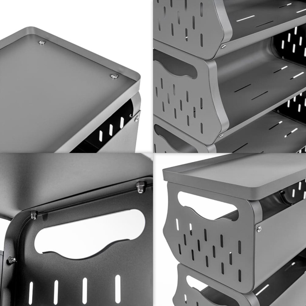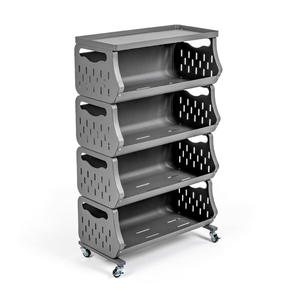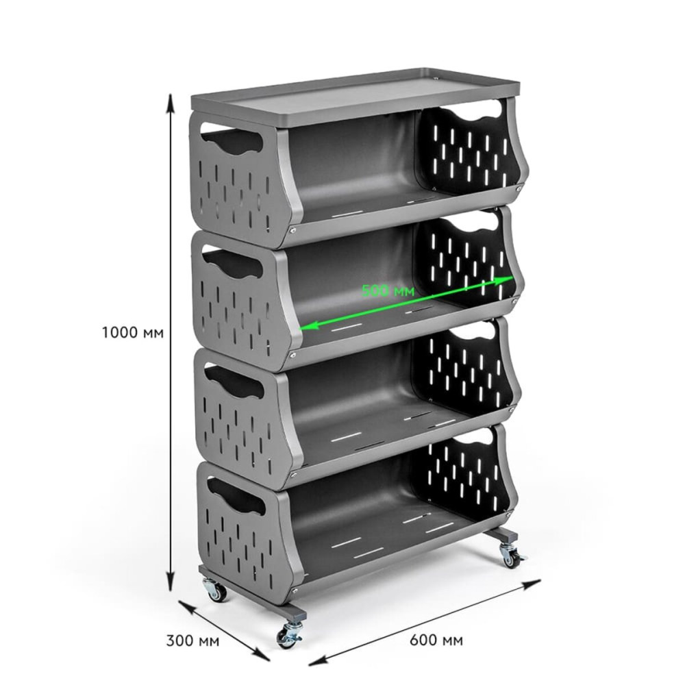 Стеллаж идеально подходит для организации пространства на кухне, где можно хранить продукты, посуду или кухонные принадлежности. В ванной комнате он станет незаменимым для хранения полотенец, косметики и средств гигиены. В офисах его можно использовать для упорядочивания бумаг, канцелярии или архивных документов. В гостиной стеллаж станет местом для книг, декоративных элементов или небольшой техники. В гараже или мастерской он отлично подходит для инструментов, запчастей и расходных материалов. Благодаря перфорированным стенкам, стеллаж также удобен для хранения овощей, фруктов или текстиля, обеспечивая хорошую вентиляцию.