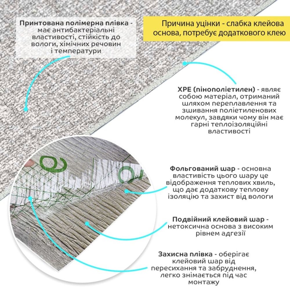 - Двойной клеевой слой: нетоксичное основание с высоким уровнем адгезии.