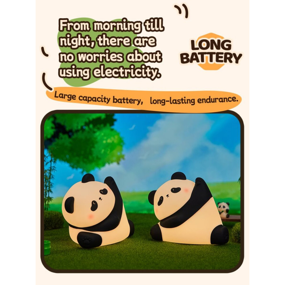 Головною особливістю моделі є сенсорне керування: дитина може легко вмикати та вимикати світло простим дотиком до панди. Вбудований акумулятор ємністю 1200 мА*год забезпечує до 6 годин безперервної роботи, створюючи затишок протягом усієї ночі. Завдяки роз'єму USB-C та кабелю в комплекті, пристрій повністю заряджається лише за 2-3 години.