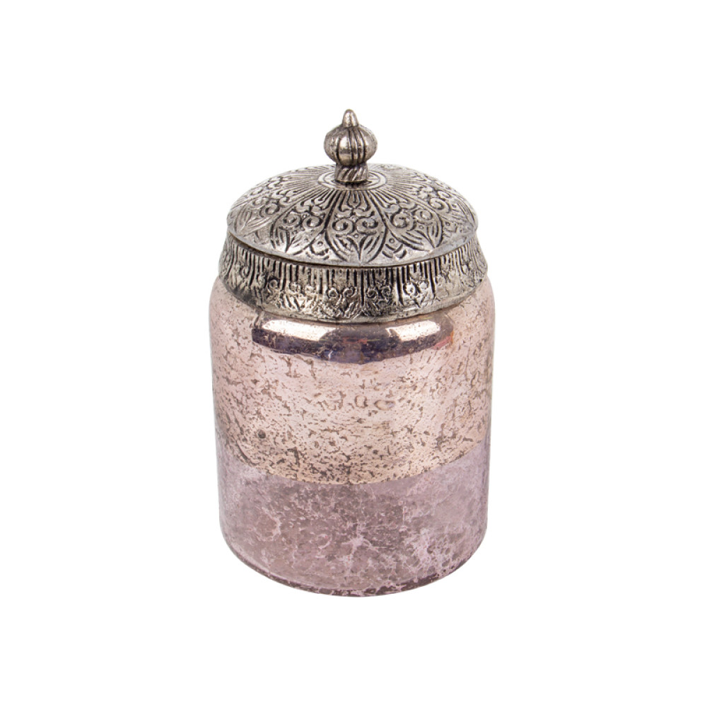 Стеклянная декоративная банка с металлической крышкой 17x10см розовая