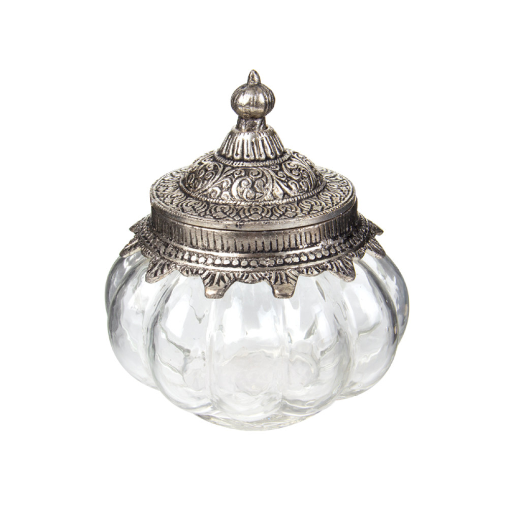 Немає відгуків про товар Стекляннаяя декоративная банка с металлической крышкой 14x14см
