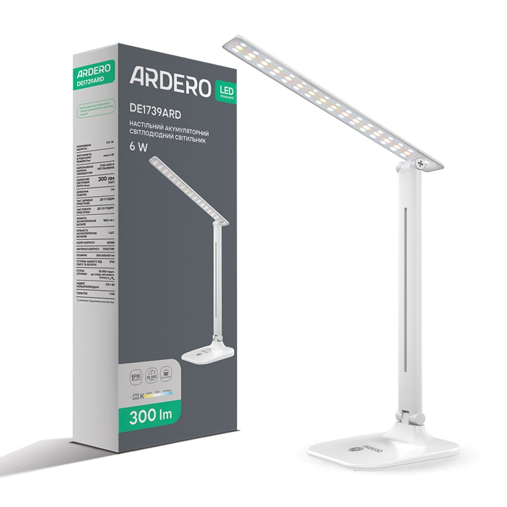 Немає відгуків про товар Аккумуляторный светодиодный настольный светильник Ardero DE1739ARD 6Вт белый