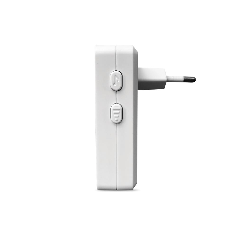 Комплект состоит из кнопки вызова, устанавливаемой у двери, и блока приемника, монтируемого внутри помещения в розетку