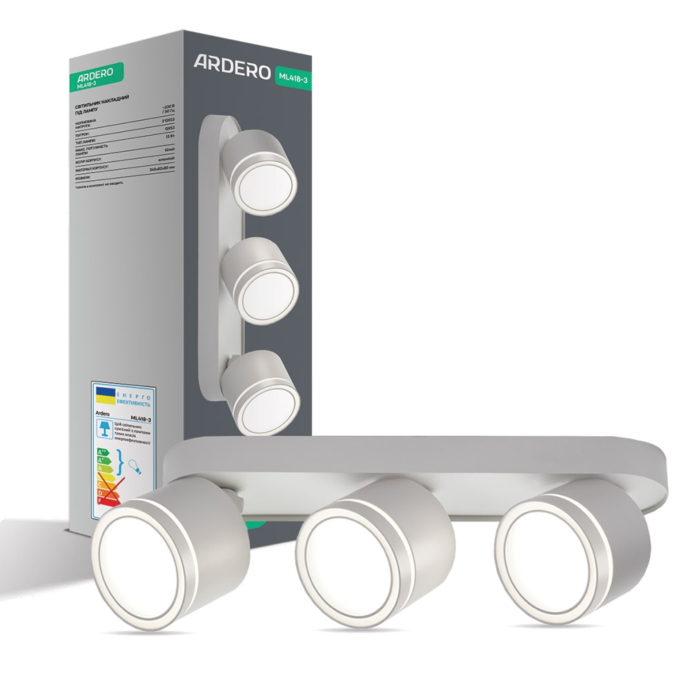 Преимущества и особенности накладного поворотного светильника Ardero ML418-3 под лампу белого цвета: