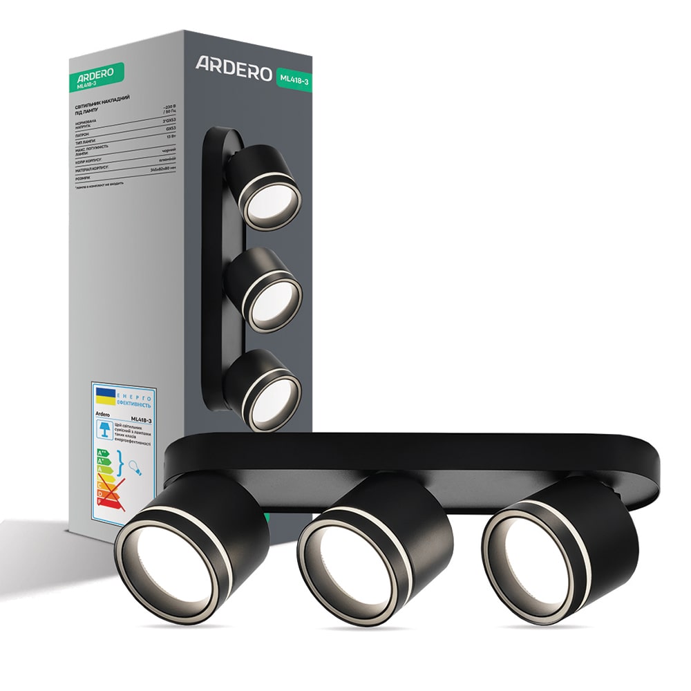 Преимущества и особенности накладного поворотного светильника Ardero ML418-3 под лампу черного цвета: