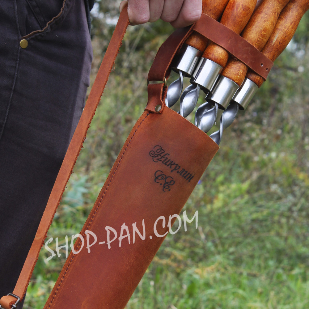 Чехол для шампуров кожаный с гравировкой - идеальный подарокЧехол для шампуров кожаный с гравировкой — это стильный и практичный подарок, который порадует любого любителя пикников и барбекю. Он не только защищает ваши шампуры, но и добавляет изюминку в любой выезд на природу.Элегантный и функциональный аксессуарКаждый человек, который увлекается приготовлением пищи на открытом огне, знает, как важна правильная организация. Чехол для шампуров выполнен из качественной кожи и оснащен уникальной гравировкой, что делает его не только стильным, но и индивидуальным. Такой подарок будет оценен по достоинству, поскольку сочетает в себе красоту и практичность.В этом чехле удобно хранить и транспортировать шампуры, что позволяет вам быть уверенным в их безопасности во время поездок. Чехол станет незаменимым спутником на отдыхе, позволяя сосредоточиться на удовольствии от готовки и общения с близкими.Идеальный подарок для любого случаяНе знаете, что подарить на день рождения, юбилей или корпоратив? Чехол для шампуров с гравировкой станет отличным решением. Этот подарок подойдёт как для друзей, так и для деловых партнёров, показывая ваше уважение и заботу. Постарайтесь выбрать уникальную гравировку, чтобы сделать презент ещё более персонализированным.Такой комплект будет незаменим для семейных выездов на природу, дружеских встреч или романтических ужинов на свежем воздухе. Он объединил в себе все необходимое для комфортного отдыха и вкусной еды на открытом огне.Высокое качество по лучшей ценеМы гарантируем безупречное качество наших товаров. Купить чехол для шампуров можно по доступной цене, а разнообразие дизайнов и вариантов гравировок позволит вам выбрать именно то, что нужно. Не упустите возможность порадовать себя или своих близких уникальным аксессуаром.Кроме того, у нас предлагаются и другие товары с гравировкой, такие как металлические рюмки, подставки под рюмки и чехлы для мангала. Ознакомьтесь с полным ассортиментом в нашем интернет-магазине, чтобы обеспечить комфортный отдых за городом.Удобная доставка и отличный сервисМы обеспечиваем быструю доставку товаров по всем регионам страны. Убедитесь в нашем высоком уровне сервиса: заказать чехол для шампуров можно всего за несколько кликов. Наша команда готова помочь вам с выбором и ответить на все ваши вопросы.Не упустите шанс сделать оригинальный подарок, который станет не просто красивым аксессуаром, но и практичным решением для ваших выходов на природу. Цена чехла для шампуров вас приятно удивит!Мы ценим каждого клиента и готовы предложить индивидуальный подход, чтобы сделать ваш подарок поистине незабываемым. Не стесняйтесь обращаться за консультацией к нашим менеджерам — мы всегда рады помочь! ???? Shop-Pan – ваш прямой поставщик туристического снаряжения и эксклюзивных аксессуаров для дома и отдыхаПредлагаем широкий ассортимент товаров для туризма, кемпинга, рыбалки и пикников – качественные изделия, проверенные временем и собранные с любовью к деталям. ???? Широкий ассортимент продукцииВ нашем каталоге представлены:✅ Туристические сковороды, турбо-печки, котлы, коптильни, ножи, рыболовные сумки, фонари и многое другое✅ Надежные товары для активного отдыха, дома и кухни – все для удобства и вдохновения.✅ Решения для любого стиля жизни — от походов к до