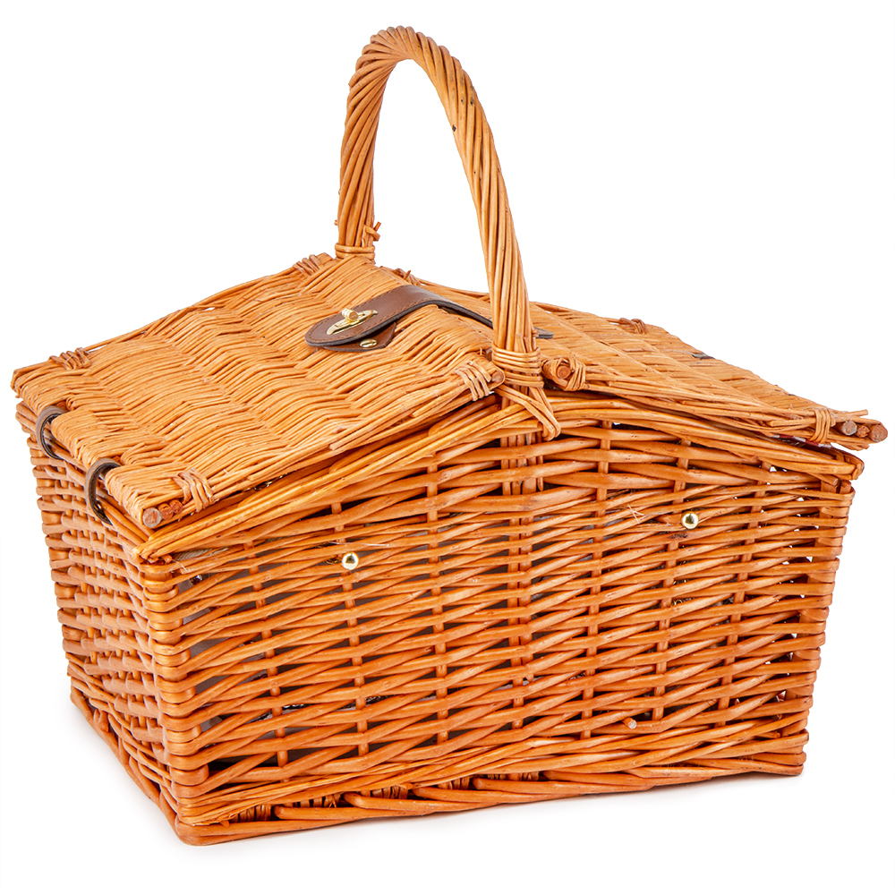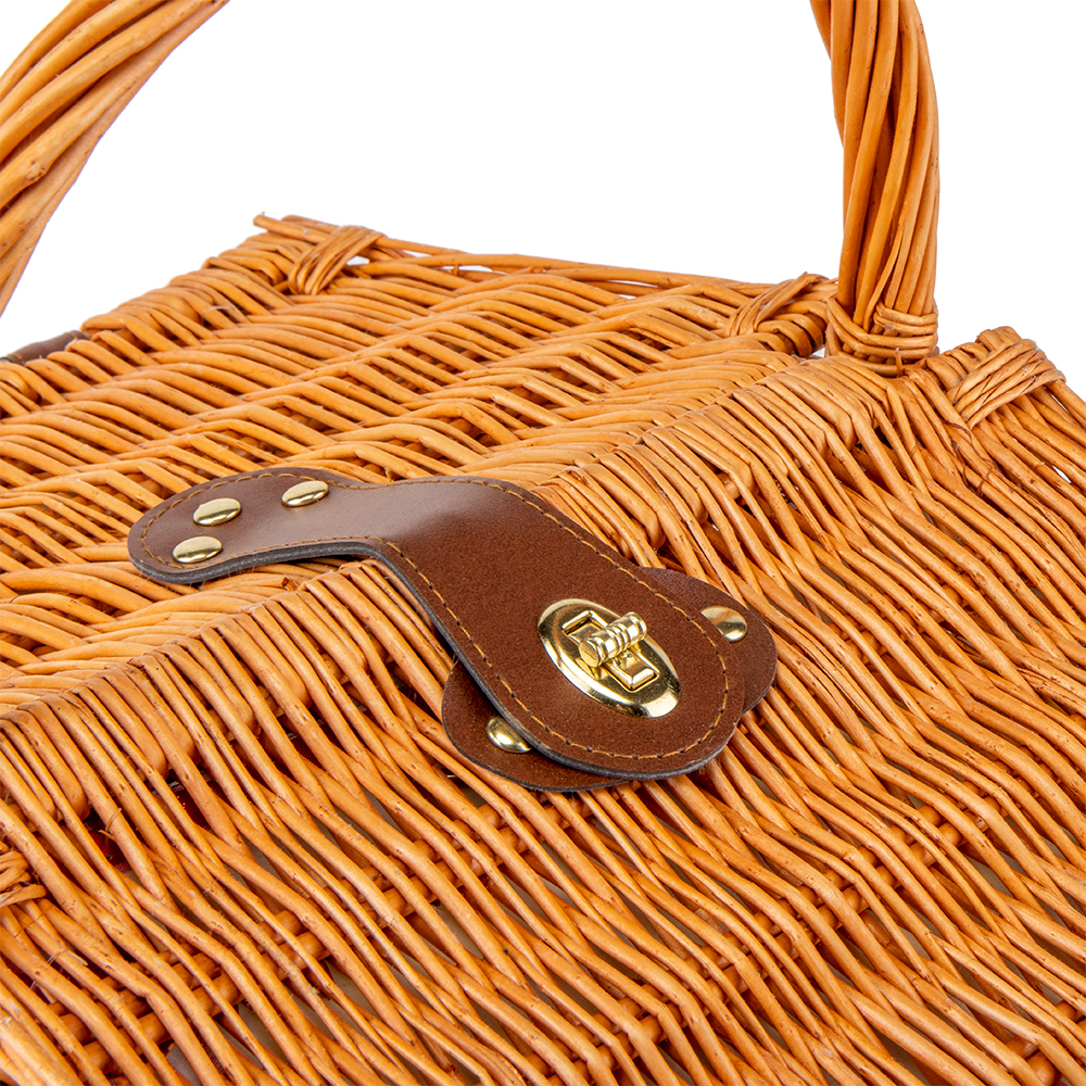 Плетений кошик для пікніка – ідеальний подарунок для справжніх естетів, любителів відпочити на природі. Кошик виглядає дуже естетично і стильно, він додасть атмосфери вуличній прогулянці. Кошик виготовлений з лози, всередині має смугасту підкладку з натурального матеріалу. Набір розрахований на 2 персони.