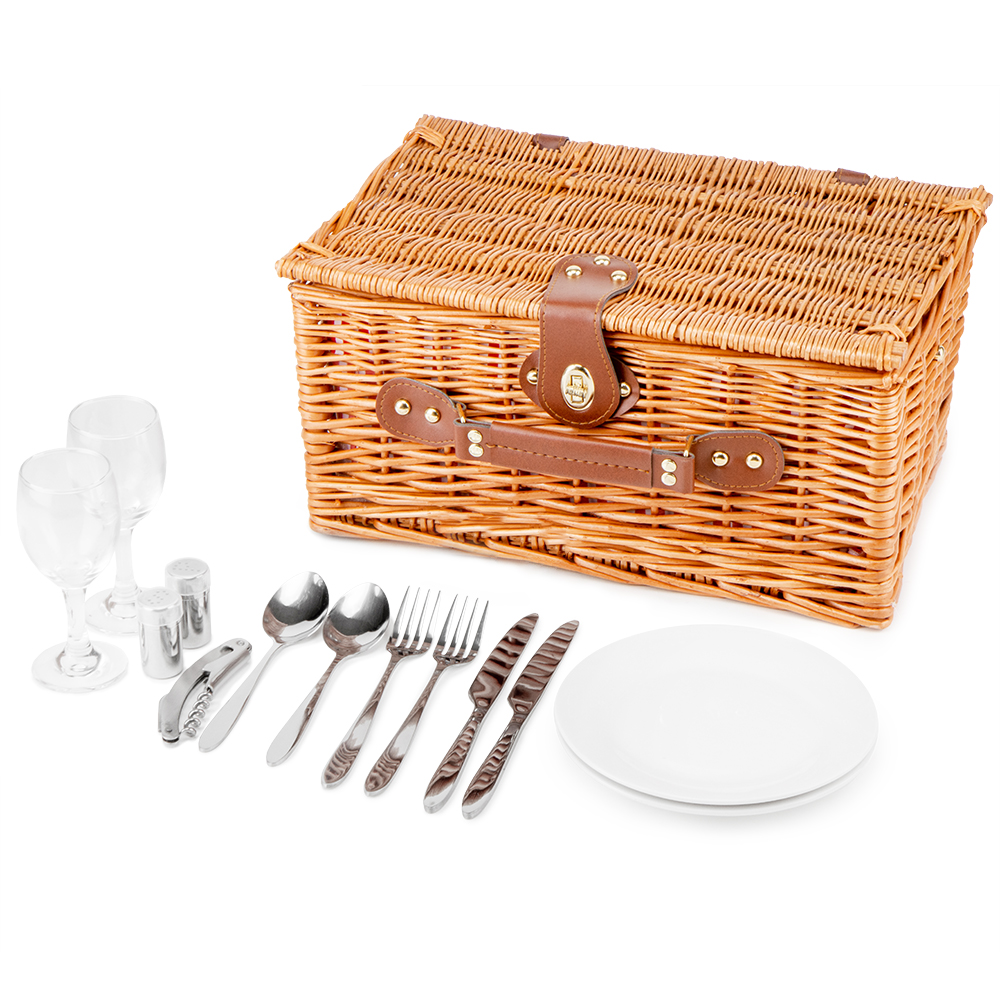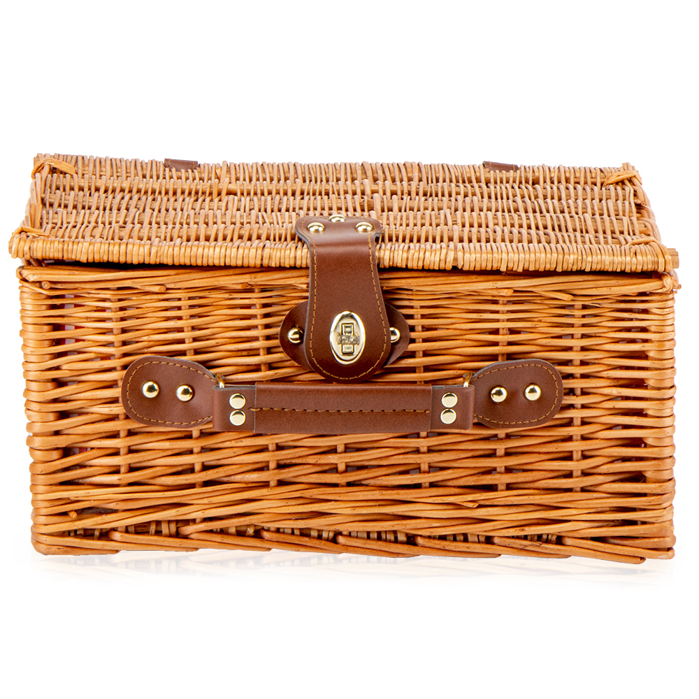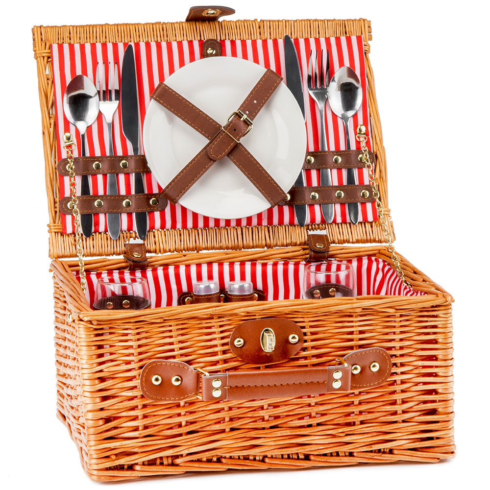 Плетений кошик для пікніка – ідеальний подарунок для справжніх естетів, любителів відпочити на природі. Кошик виконаний з лози - плетеної цільної верби, всередині має смугасту підкладку з натурального матеріалу. З цим кошиком для пікніка легко створити необхідну атмосферу, все, що потрібно – це взяти з собою улюблену їжу та напої! Кошик досить просторий і містить 2 набори посуду. Кошик для пікніка не тільки гарний і прикрасить Ваше свято, але й екологічний, безпечний для навколишнього середовища.